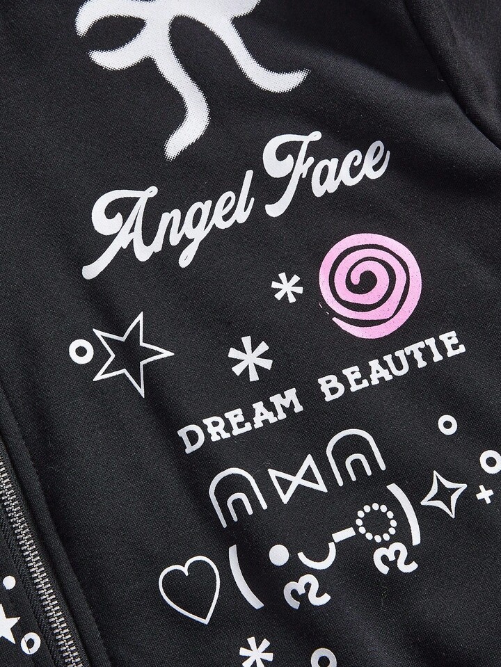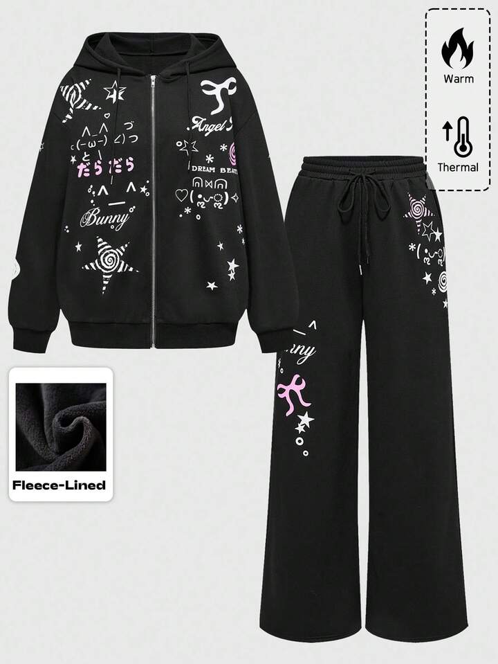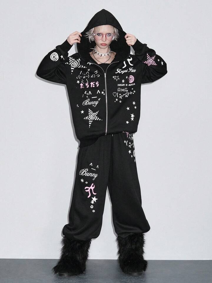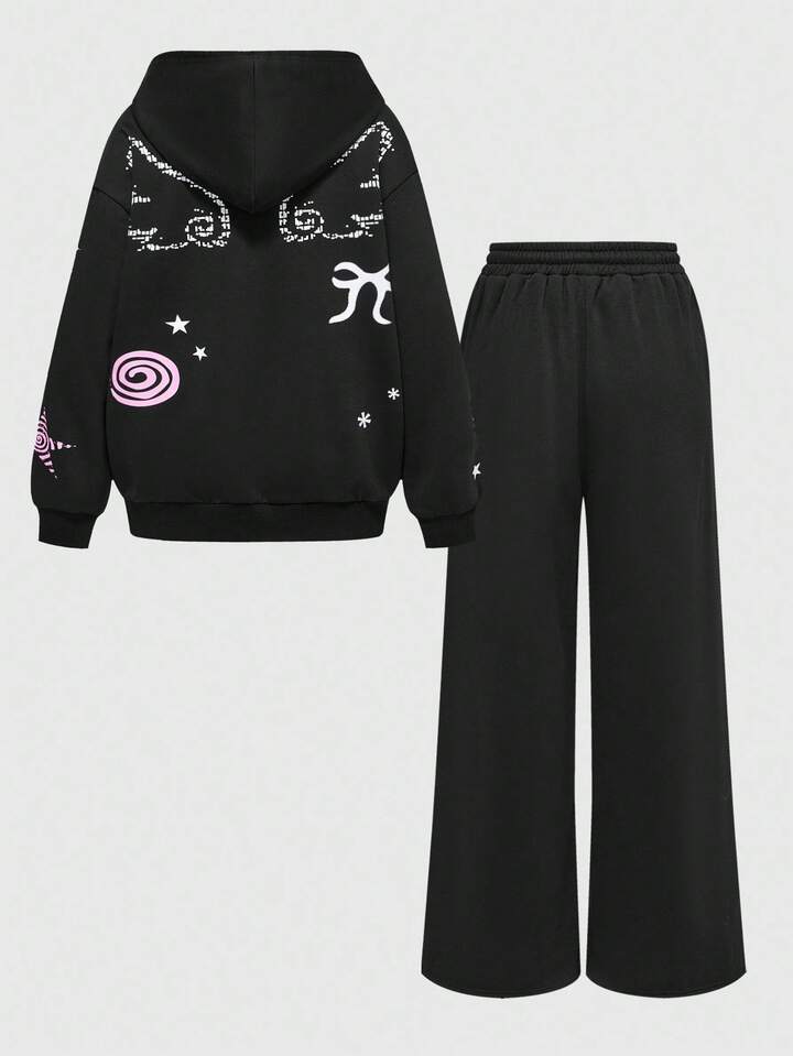 2 Stücke Damen süßer Mädchen Stern Schleife Flügel Loose Fit Sweatshirt und Jogginghose Set