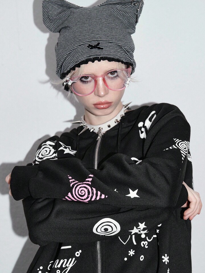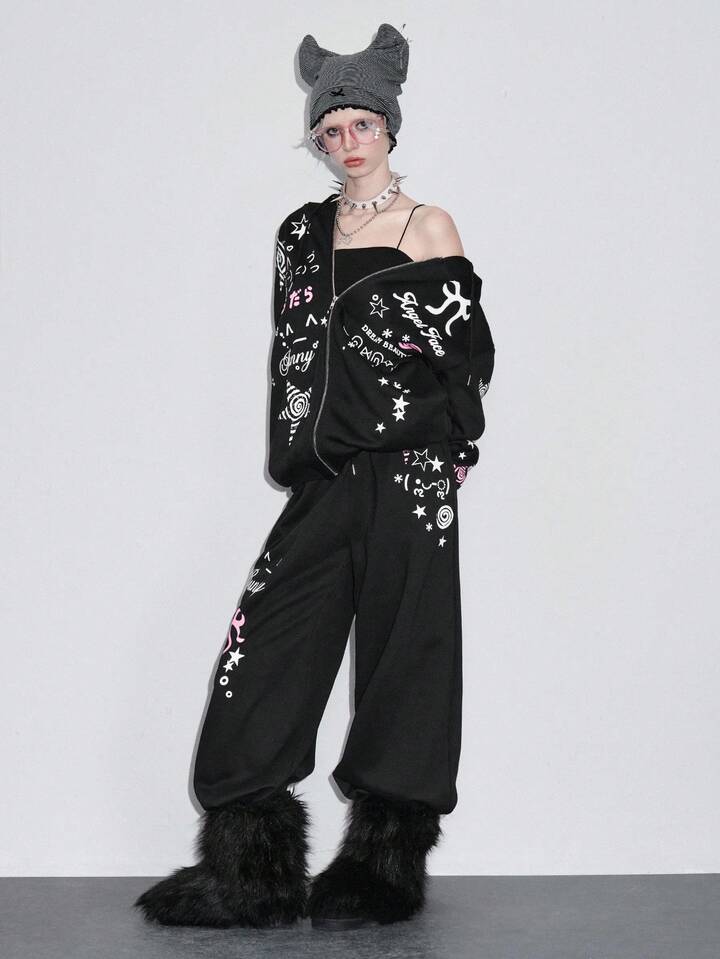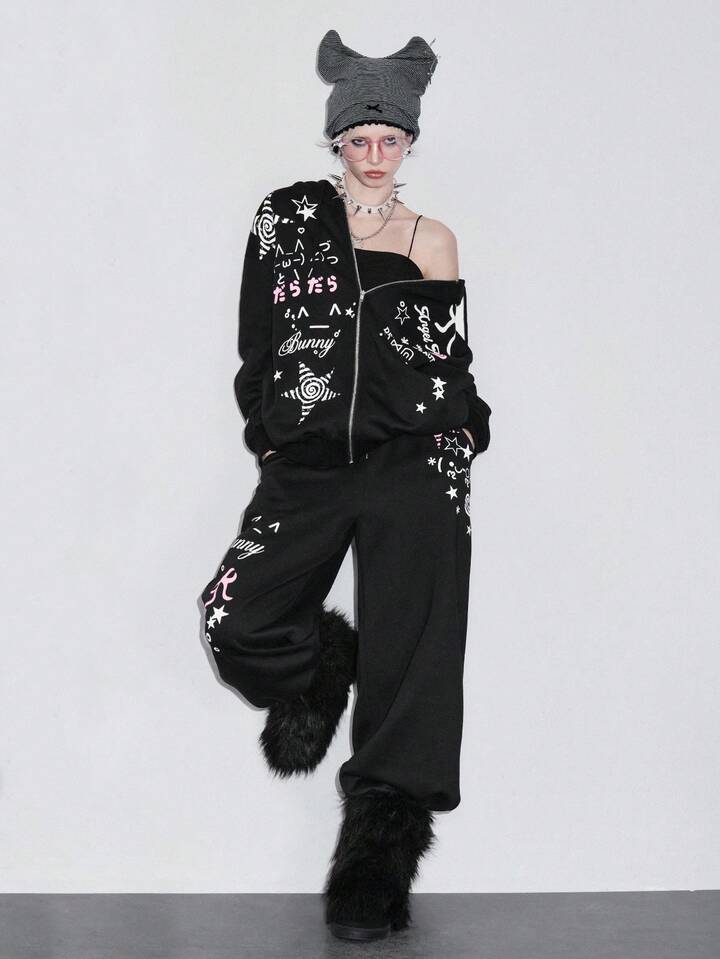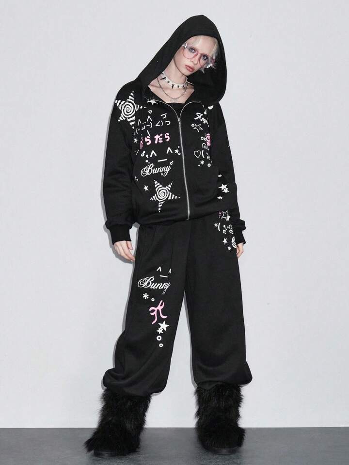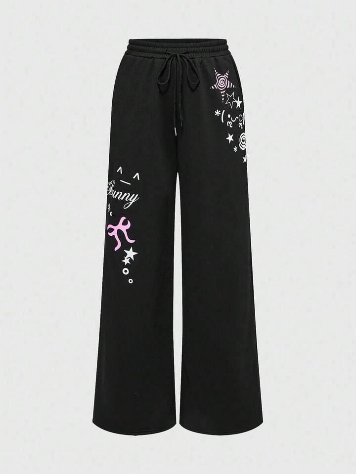 2 Stücke Damen süßer Mädchen Stern Schleife Flügel Loose Fit Sweatshirt und Jogginghose Set