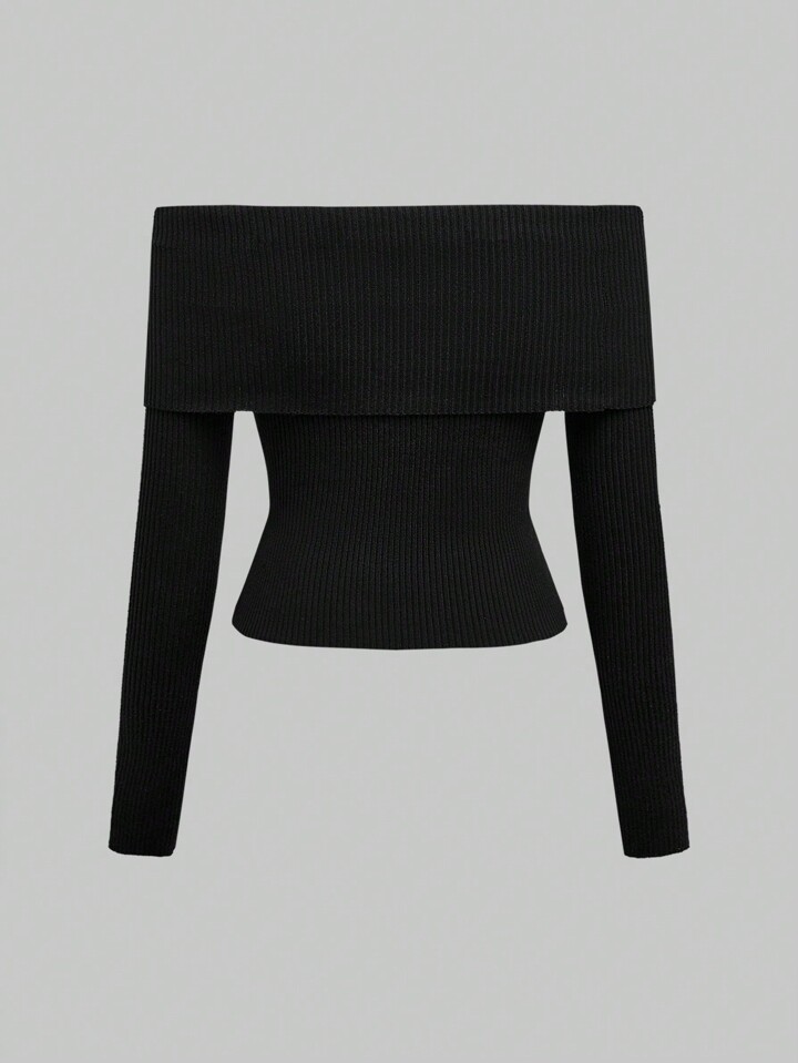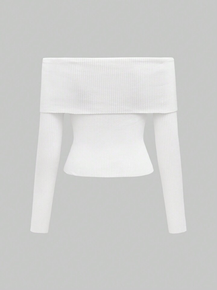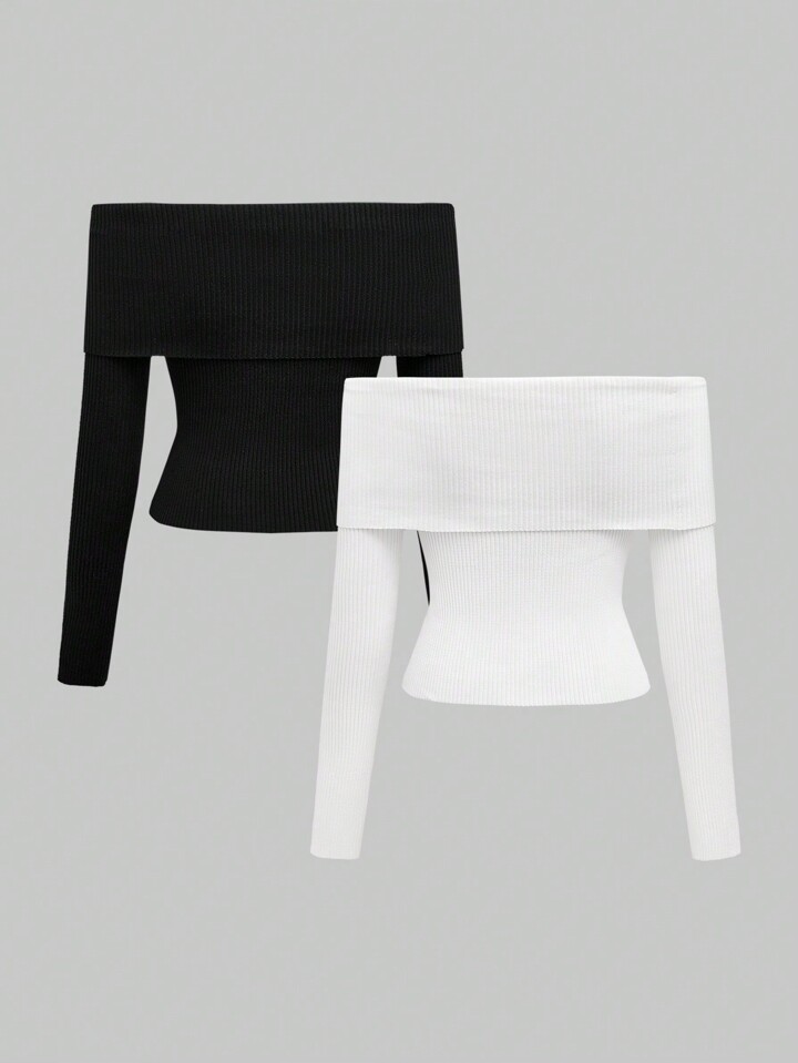2 Stücke Damen eng anliegender Off-Shoulder Langarm Pullover Set