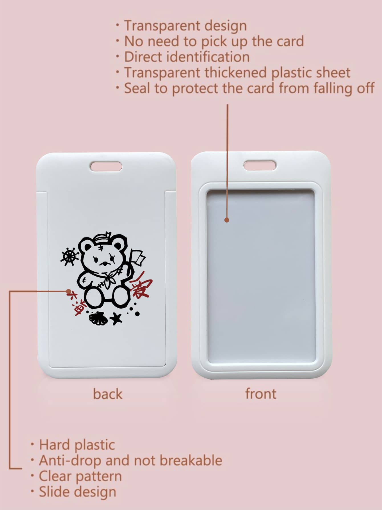 2 Stücke/Set Cartoon & Bär & Buchstabe Grafik, Kartenhülle mit & Tragegurt