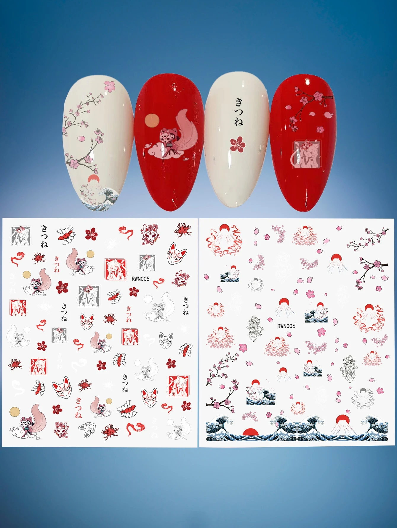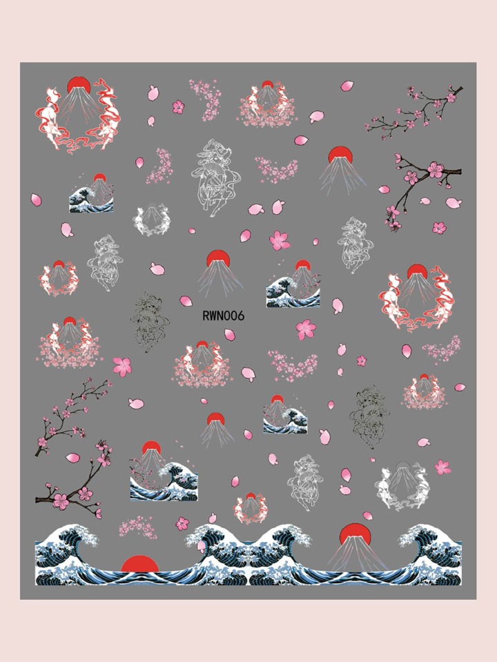 2 Blätter Nagelkunst Aufkleber mit Cartoon Grafik