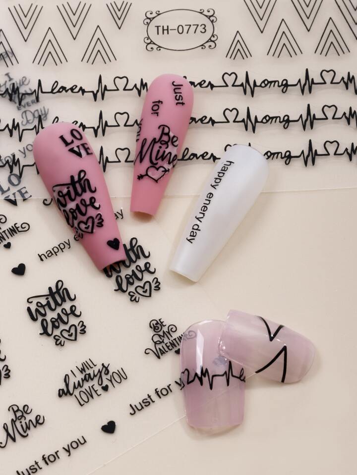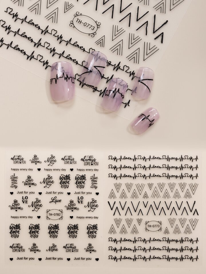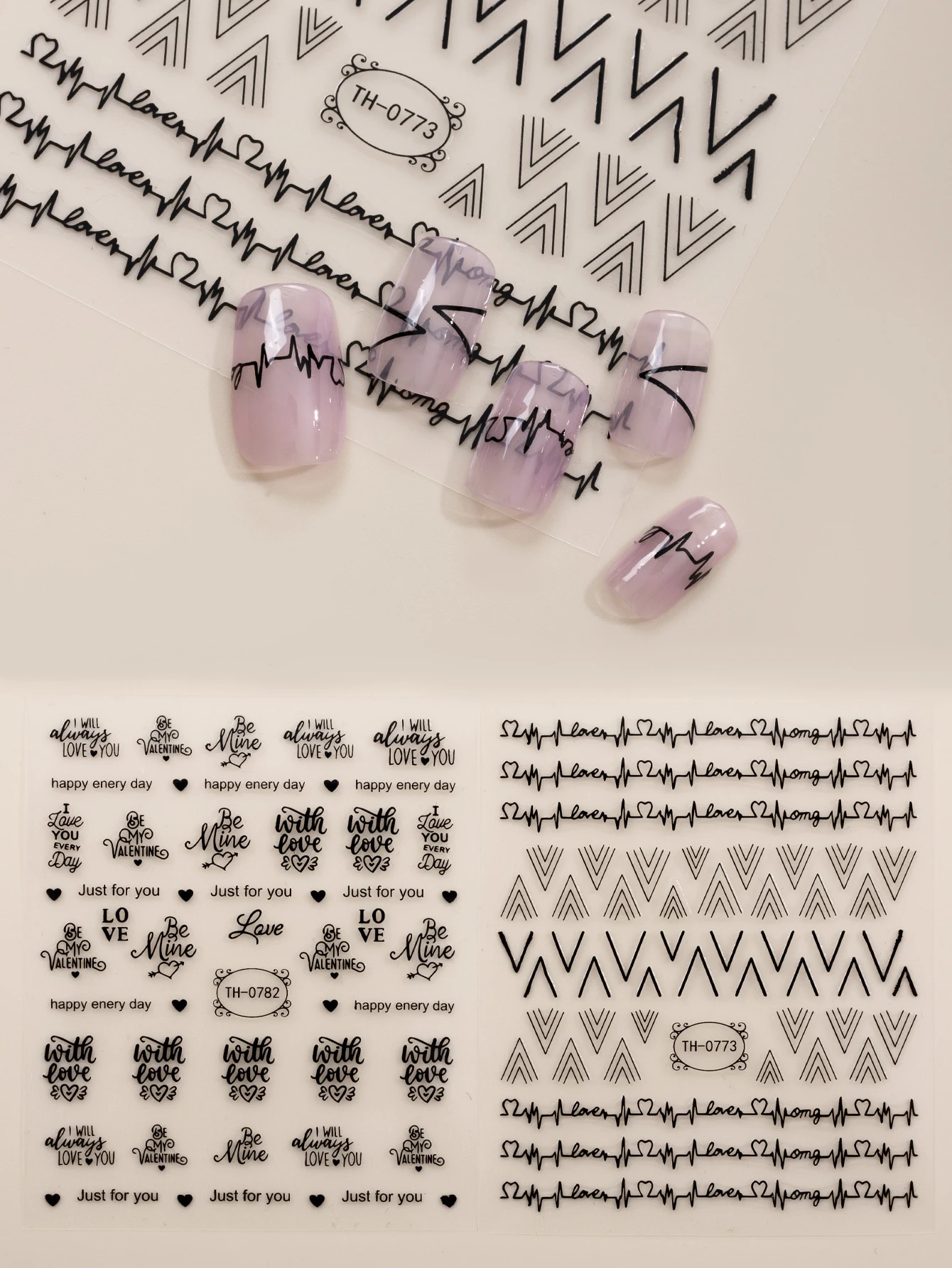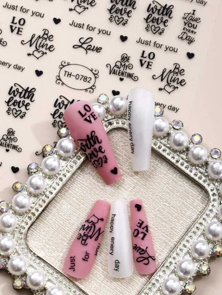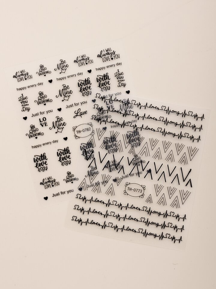 2 Blätter Nagelkunst Aufkleber mit Buchstaben Grafik