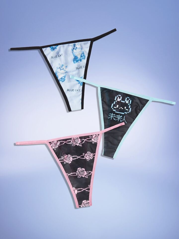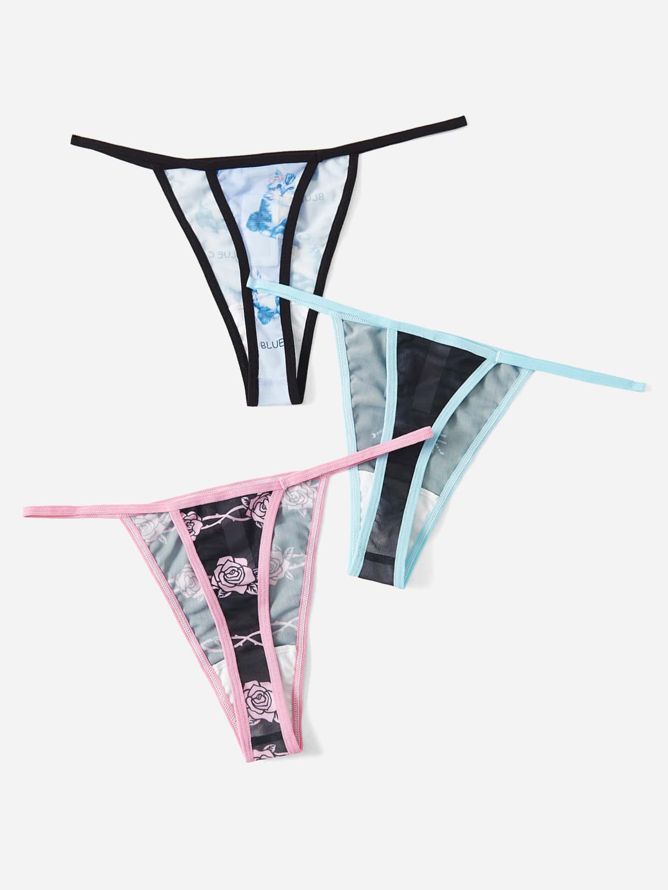 3 Packe Tanga Set mit Cartoon & Blume Grafik, Kontrastsaum