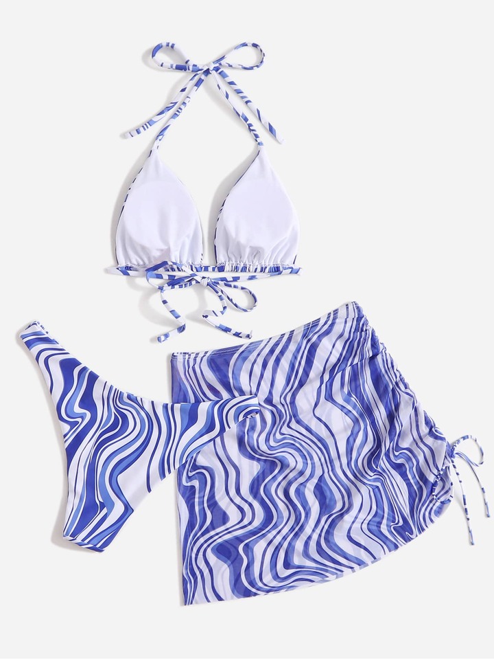 3er Pack Grafik Bikini mit Strandrock