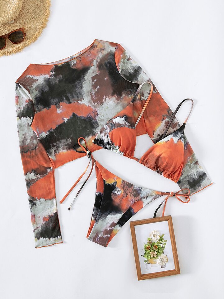 3er Pack Batik-Bikini Set mit seitlichen Bindebändern für den Sommerstrand