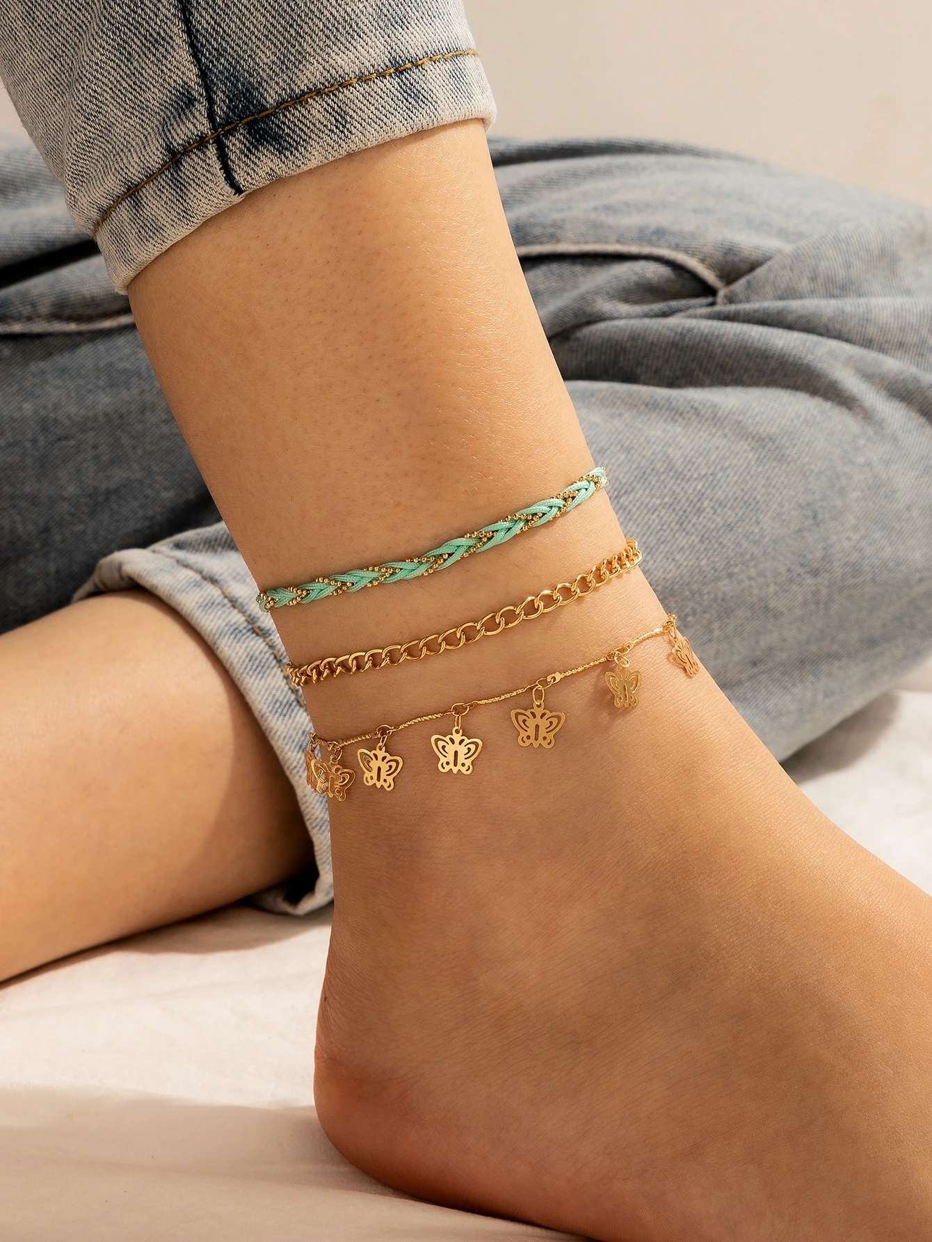 3 Stücke Fußkette mit Schmetterling Anhänger