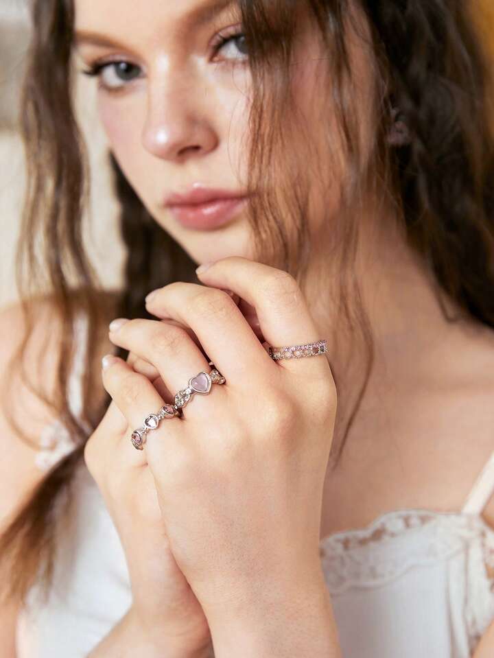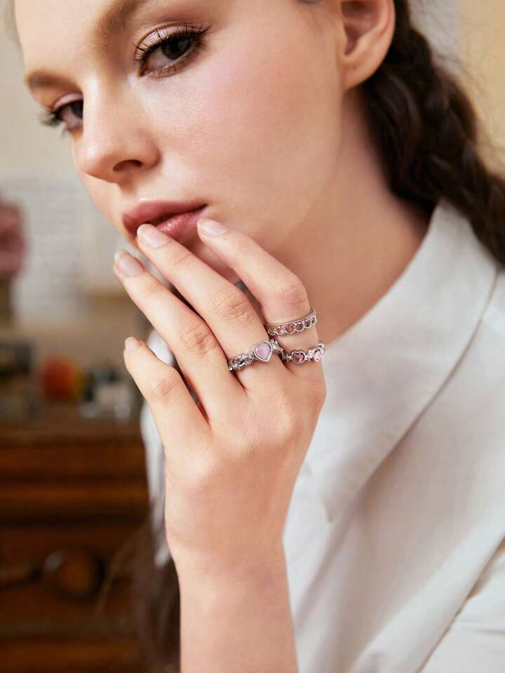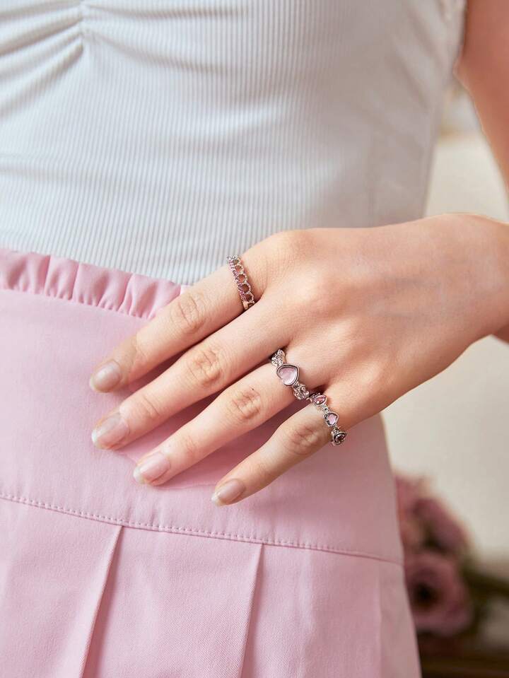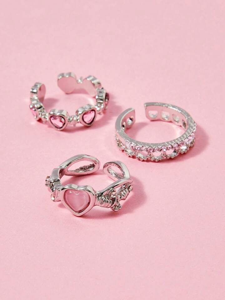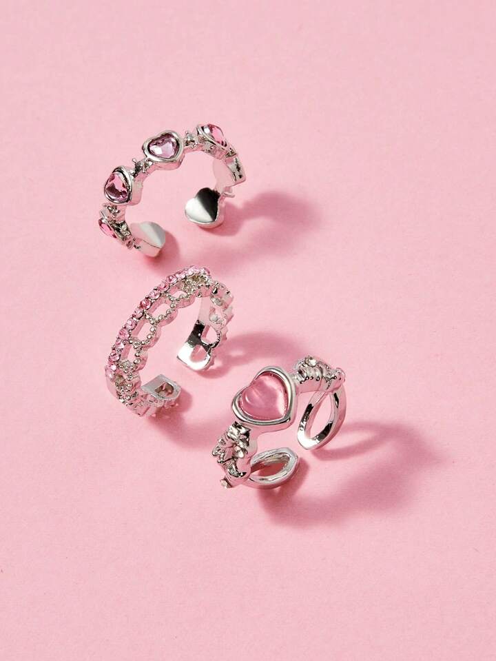 3 Stücke Ring Fashion Zinklegierung, Herz Design, Für Frauen Für Tägliche Dekoration