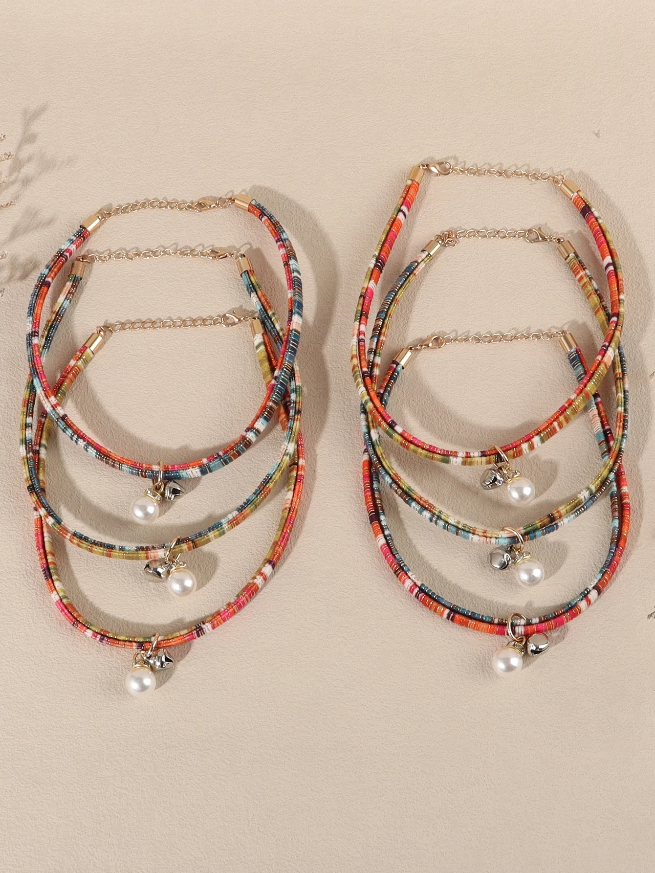3 Stücke Haustier Halskette mit Zufällige Farbe Kunstperle Anhänger