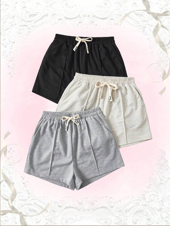 3 Stücke Shorts mit Naht, Detail, Tunnelzug,
