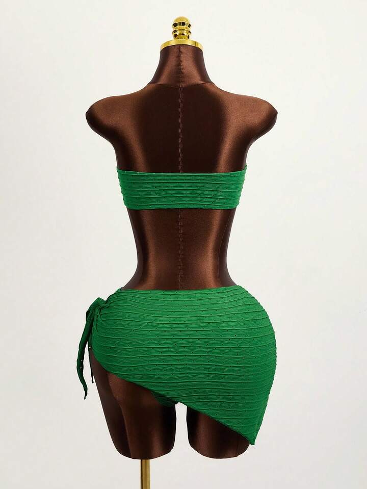 3 Stücke/Set einfarbiger sexy Bikini Badeanzug, geeignet für Strand & Urlaub