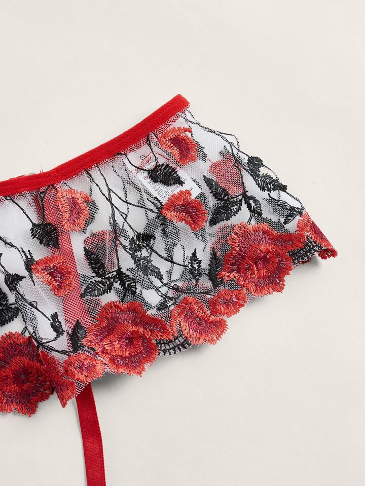 3 Stücke/set Damen Sexy Dessous Mit Rose Stickerei Stahlring Bh, G-string Höschen Und Strumpfhalter Für Valentinstag