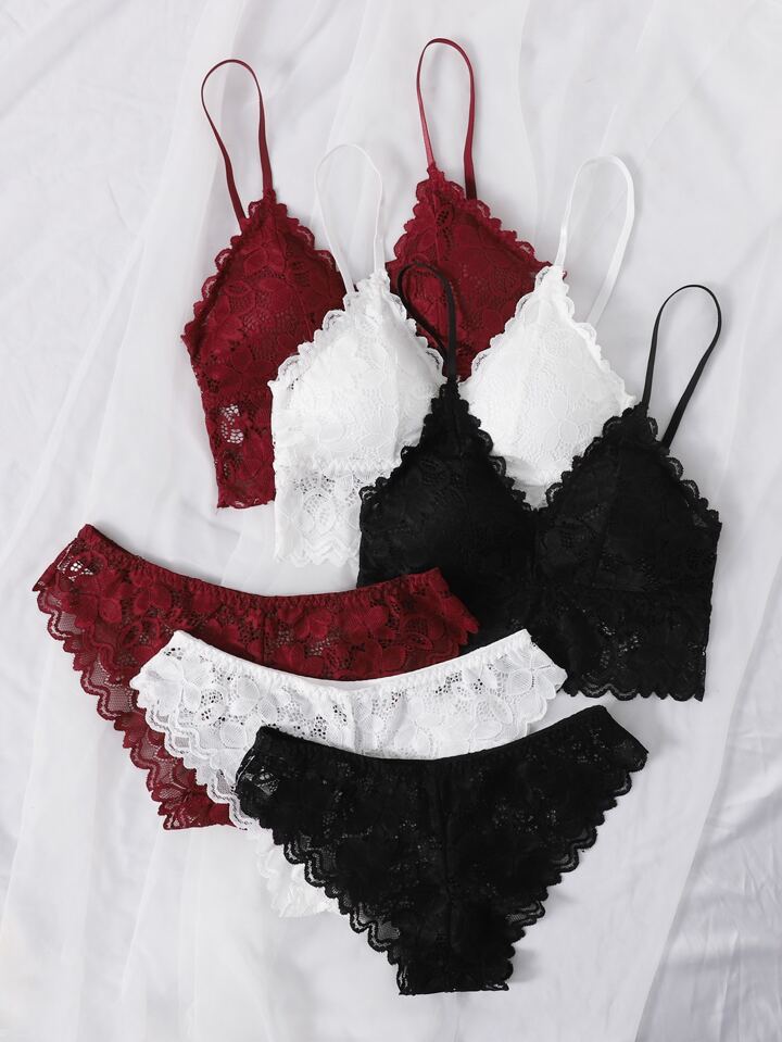 3 Sets aus floralem Spitzen-BH & Slip Unterwäsche Set