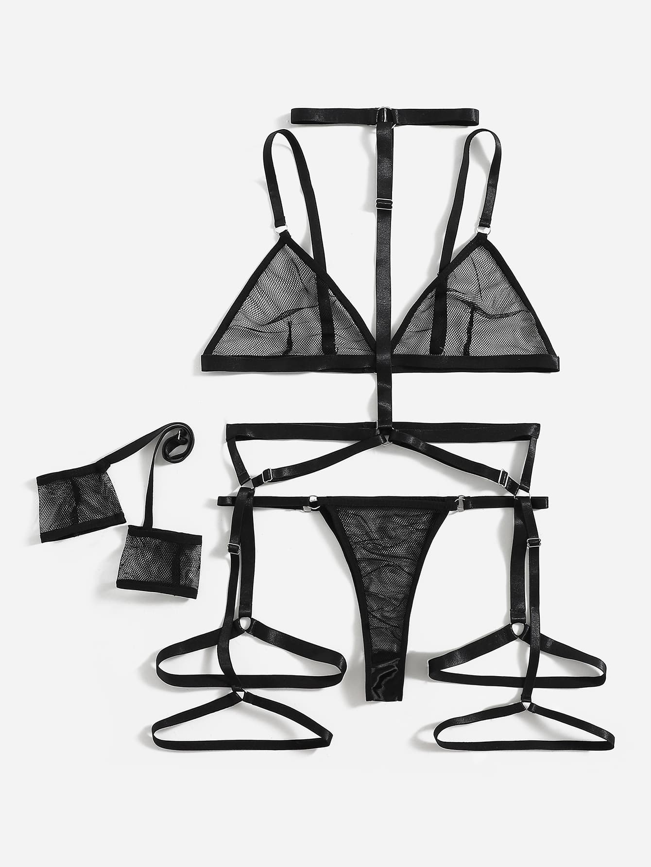 4 Packe Einfarbiges Dessous Set mit transparentem Netz