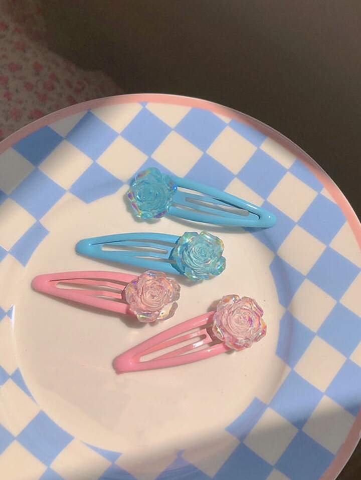 4 Stücke Spange mit Blume Dekor