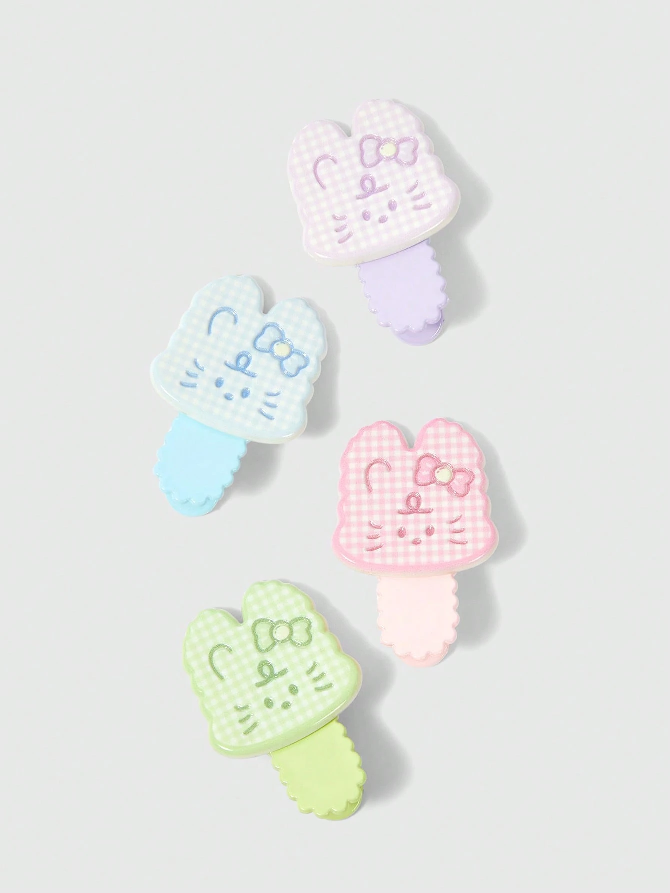 4 Stück zufällige Farbe karierte, gestreifte Haarklemmen mit Hasen Element, süße Cartoon-Stil Alligator Haarklammer, modische alltägliche Party Haarzubehör Klammern, Haarspangen
