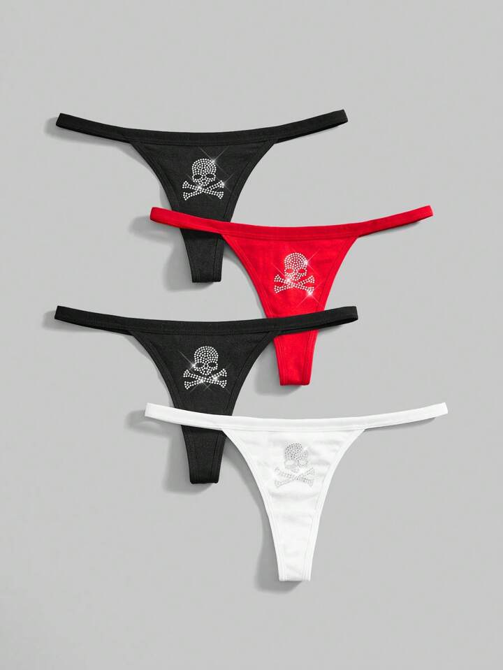 4 Stücke/Set Gothic Stil Skelett Strass Dekor G-String Höschen