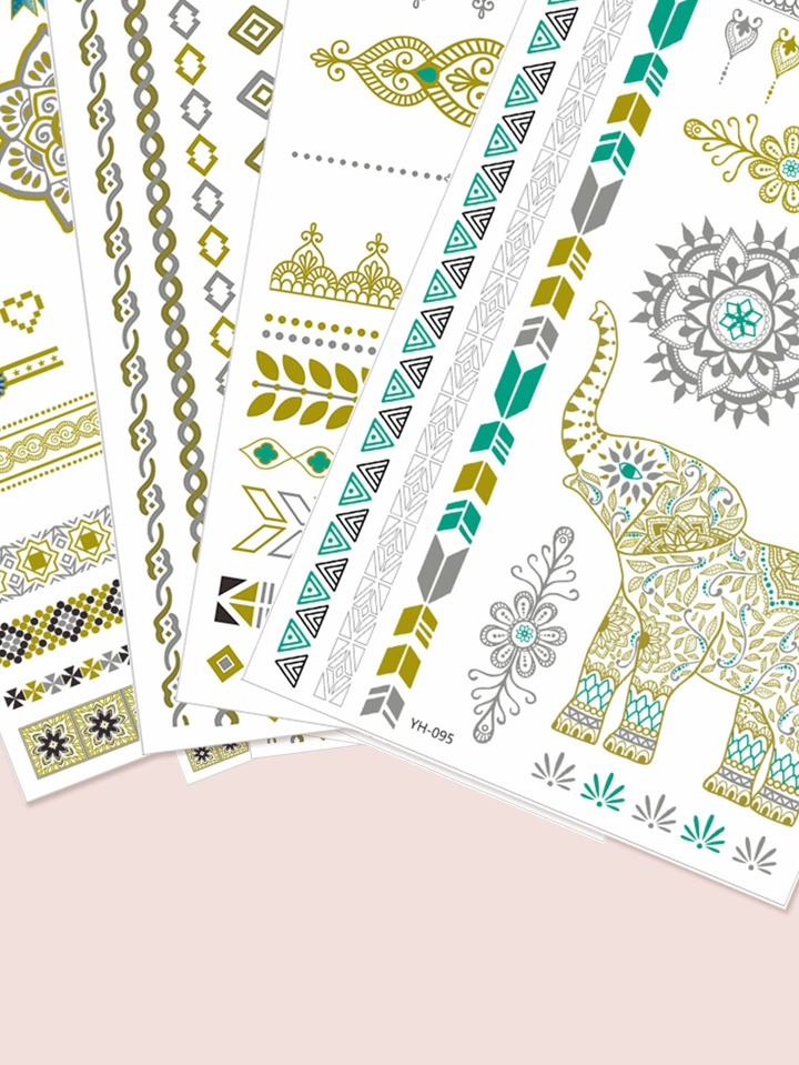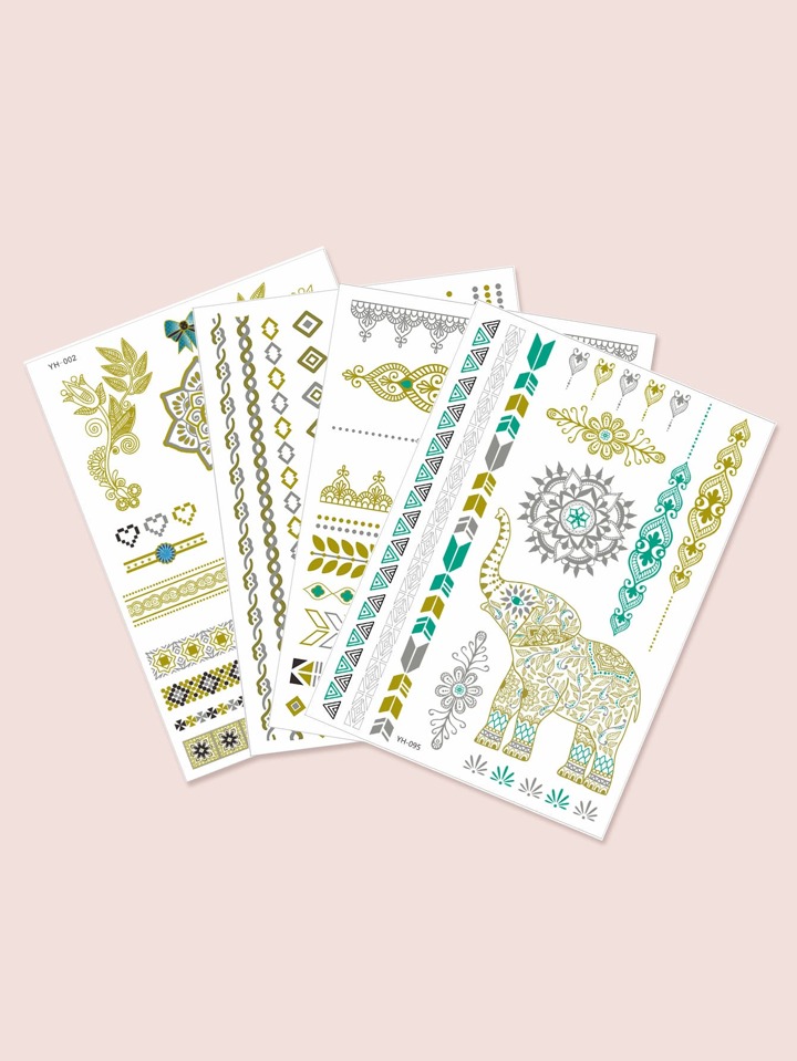 4 Blätter Tattoo Aufkleber mit Geometrie & Elefant Muster