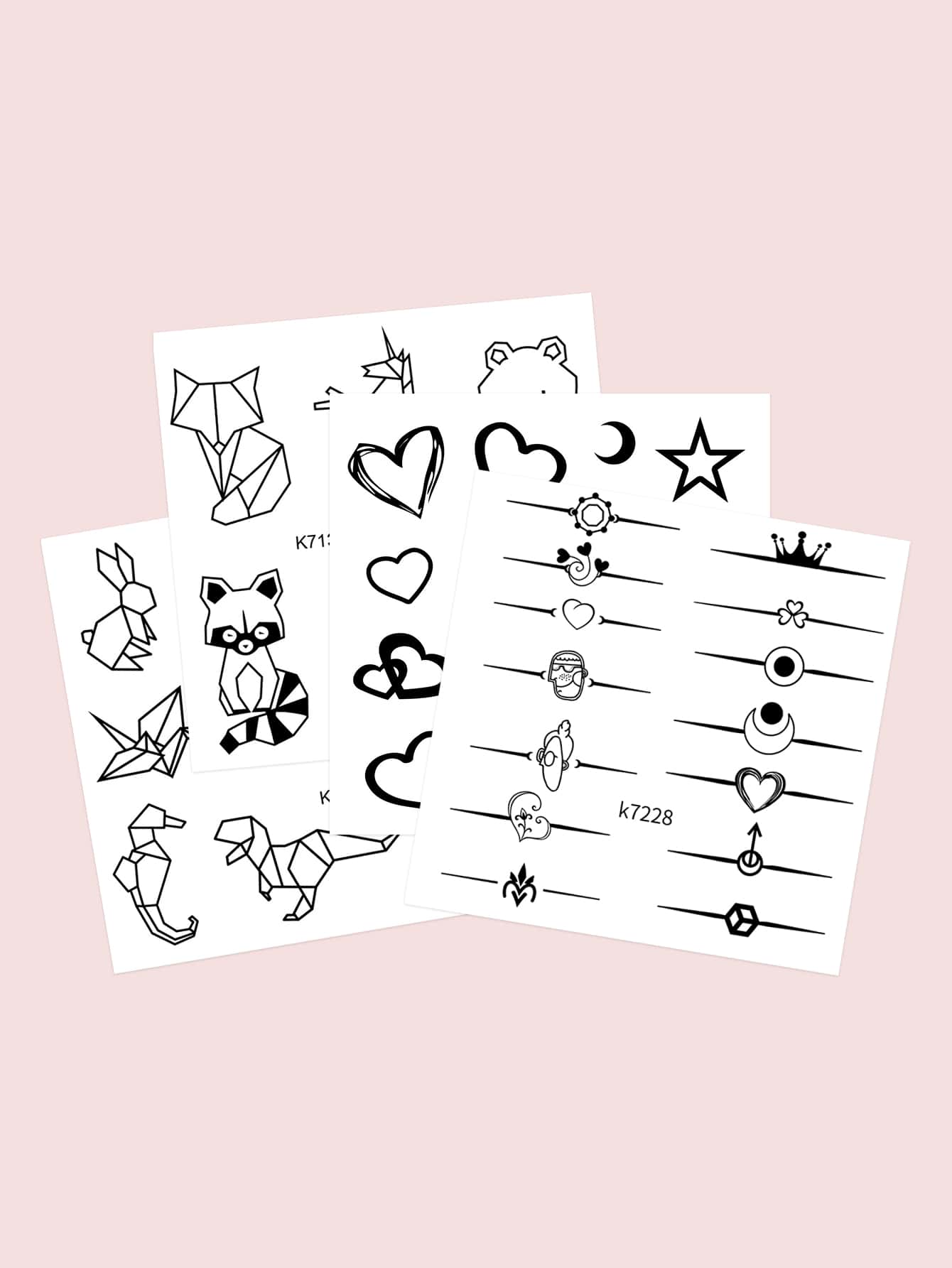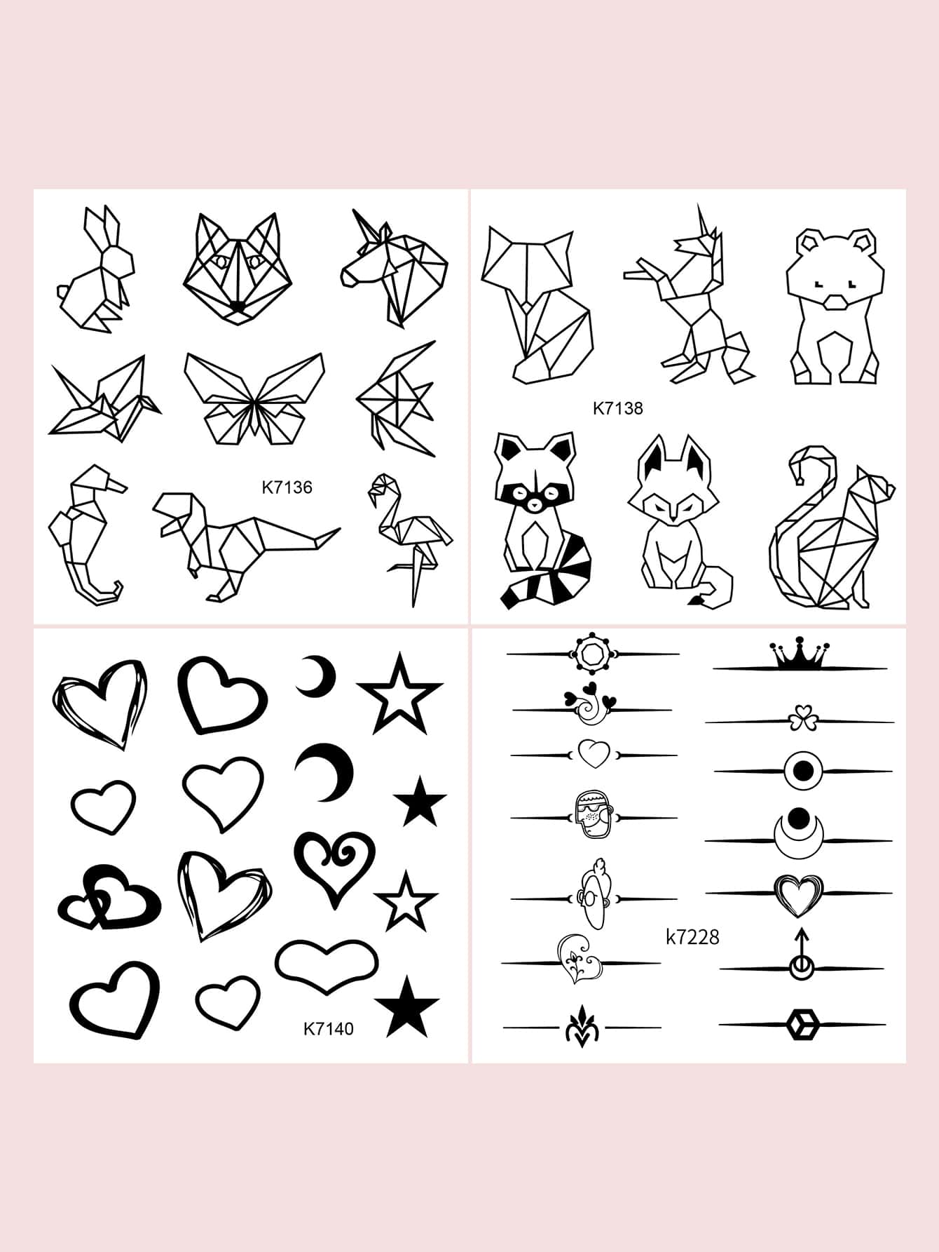 4 Blätter Tattoo Aufkleber mit Herz & Fuchs Muster