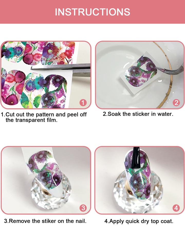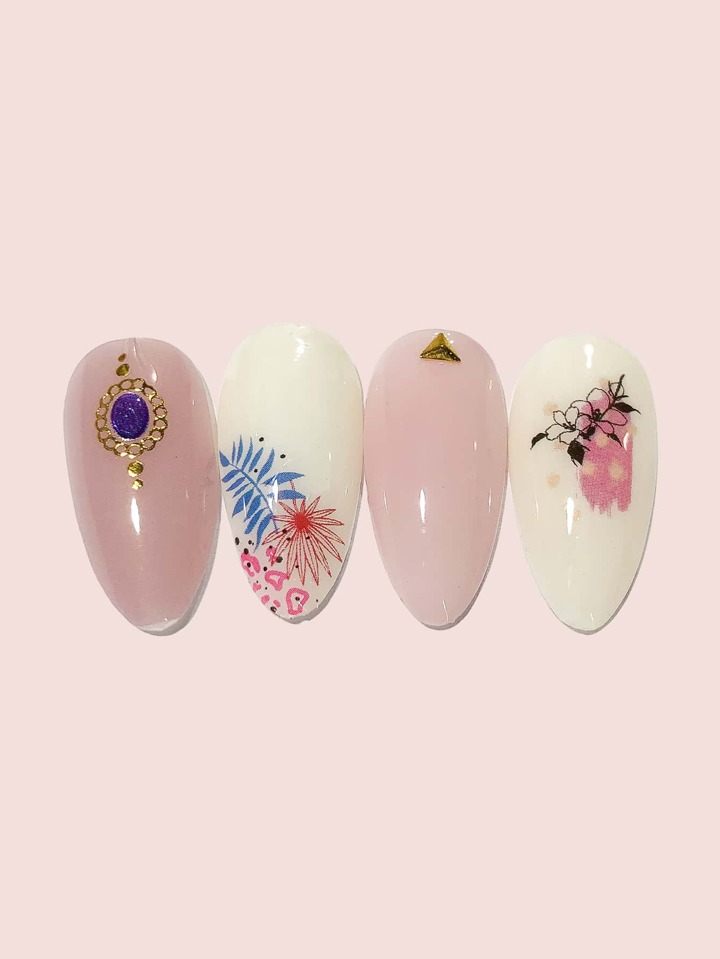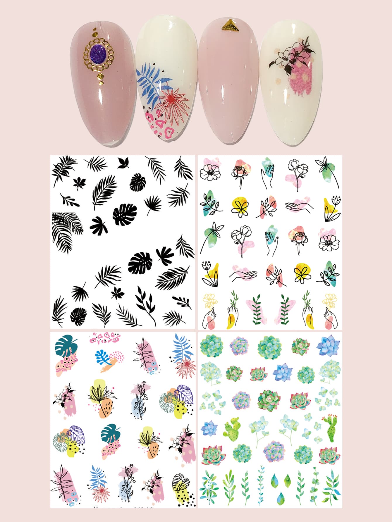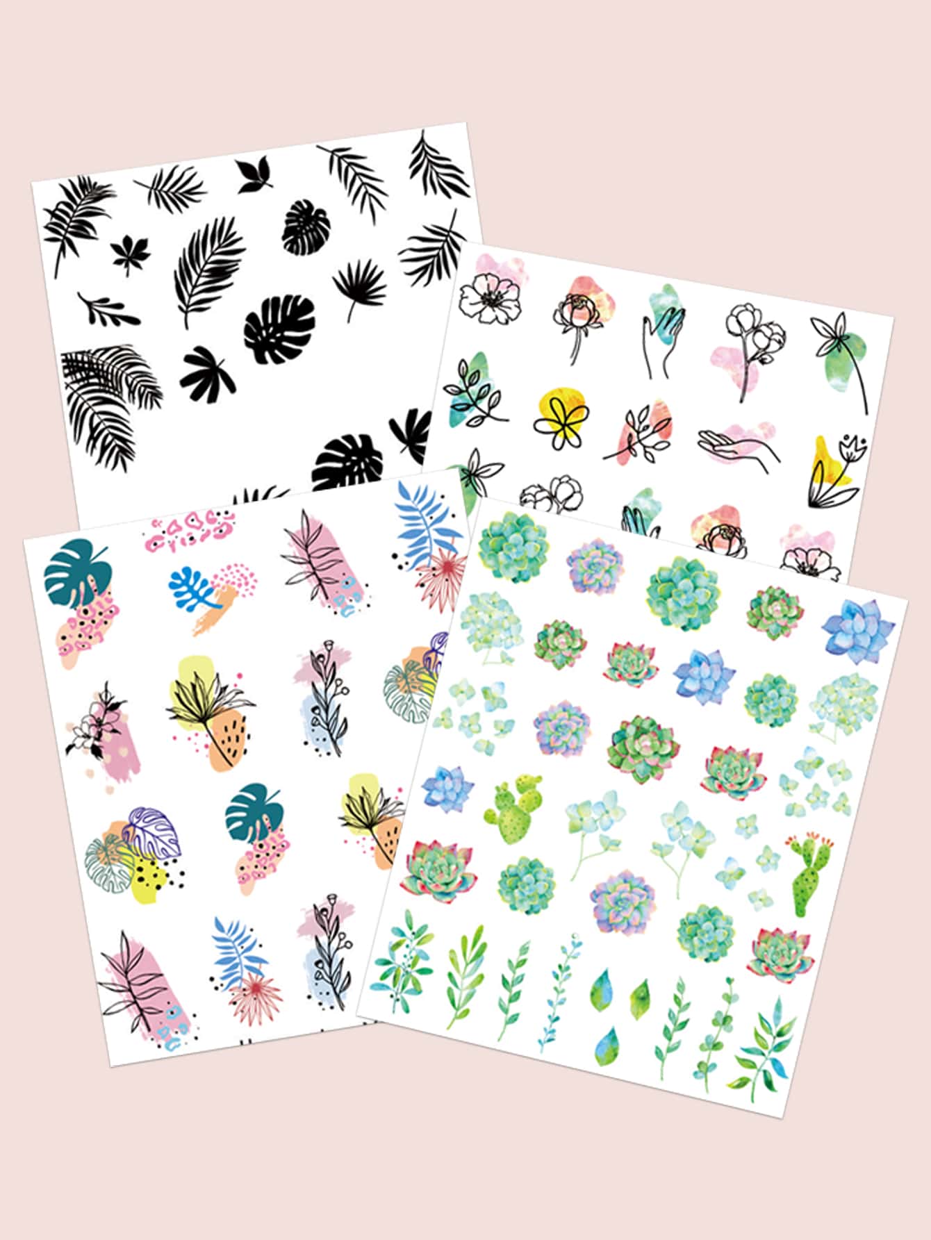 4 Blätter Nagel Wasser Aufkleber mit Pflanze Muster