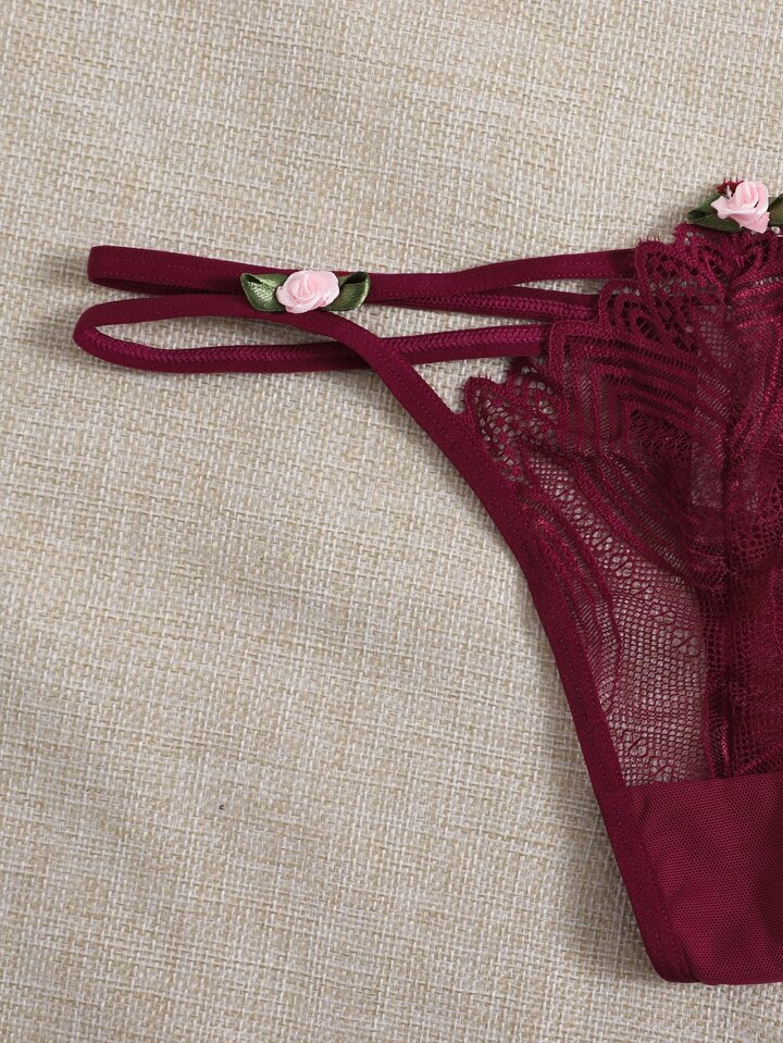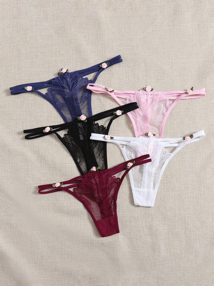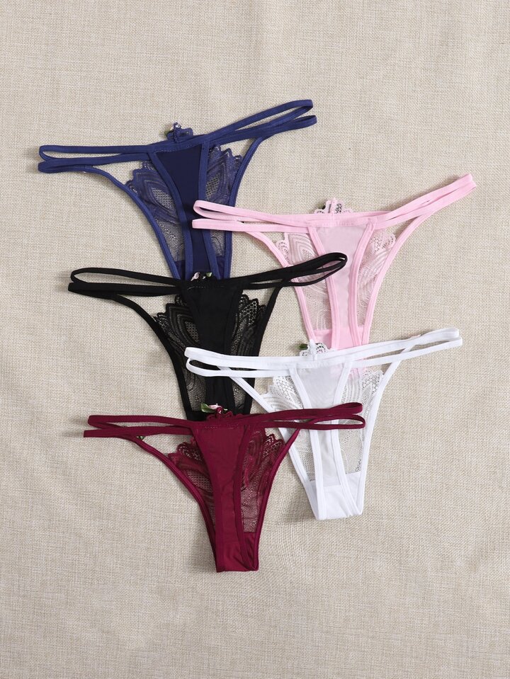 5 Packe Höschen Set mit Blume Dekor, Kontrast Spitzen