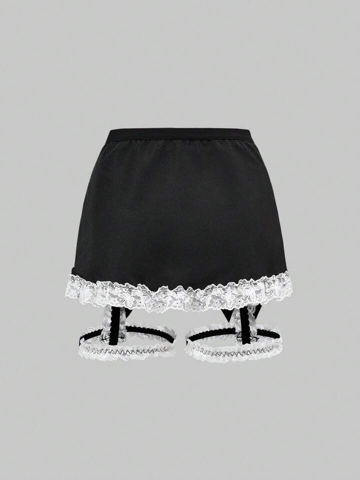 5 Stücke dunkles Gothic Cosplay Kostüm-Set - Bustier, String, Strumpfhalter, Beinhalter, Schürzenkleid