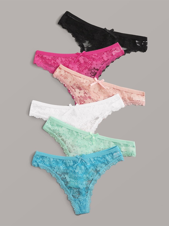 6er-Pack florales Spitzen-Transparenz-Unterhosenset Lingerie