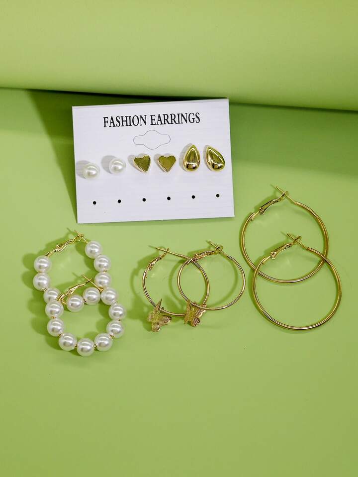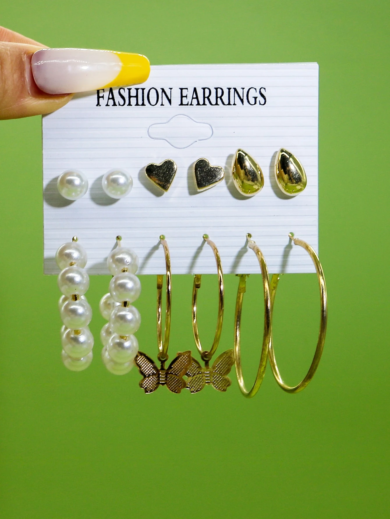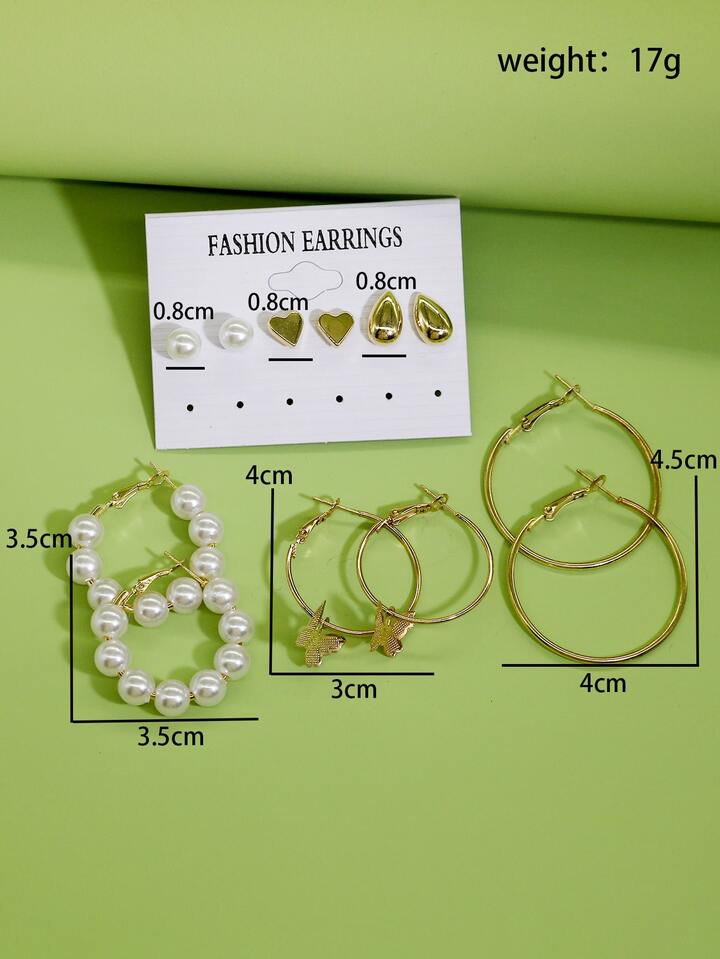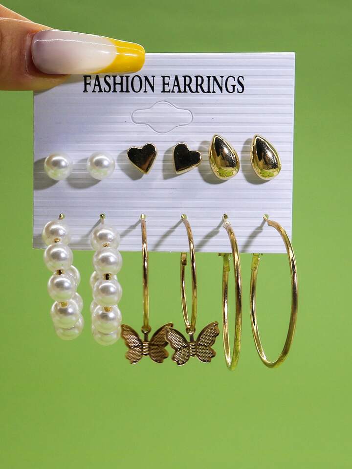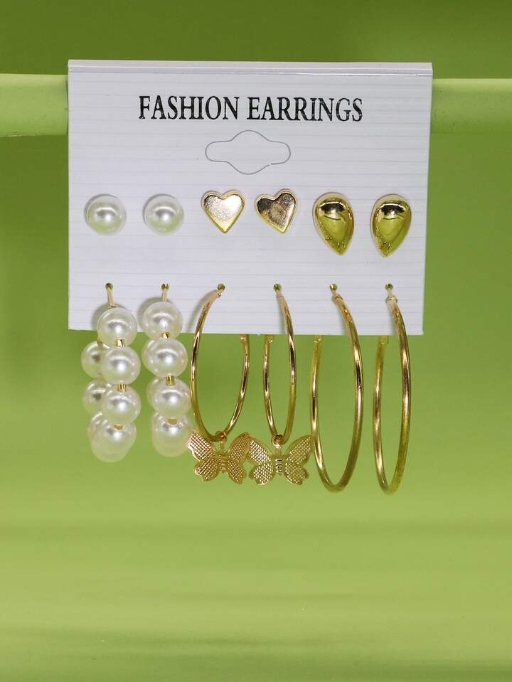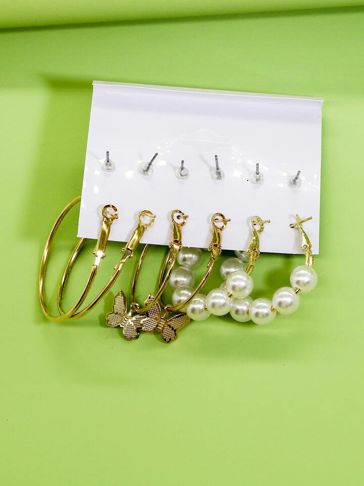 6 Paar/Set Ohrringe mit Kunstperle, & Schmetterling Dekor