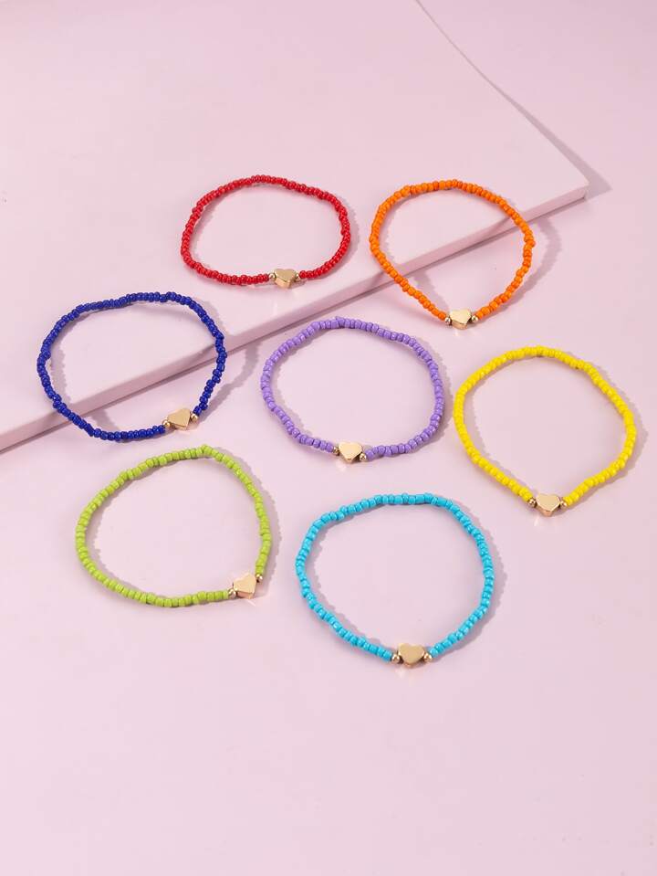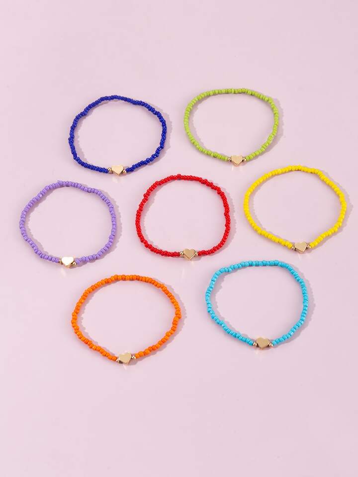 7 Stücke Perlenarmband mit Herz Dekor