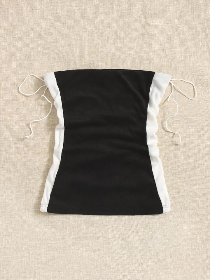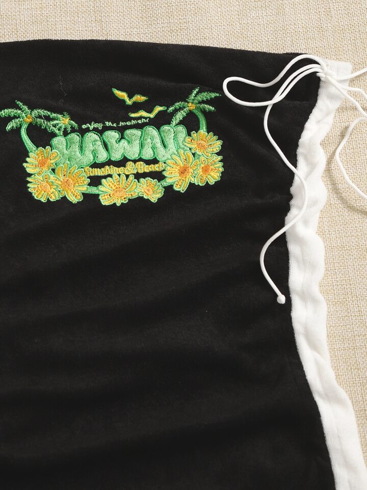 Tube Top mit 90s Blume & Buchstabe Stickerei, seitlichem Schnürzug