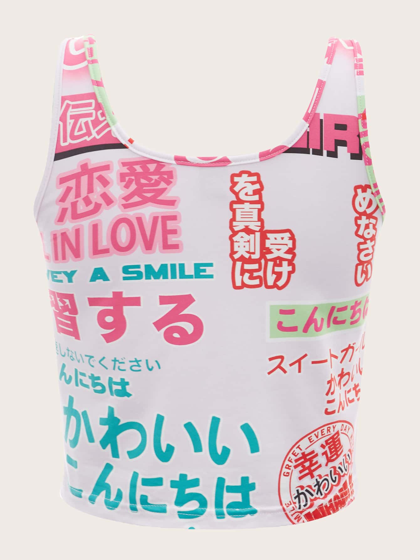 Tank Top mit 90s japanisch Schrift & Figur Grafik