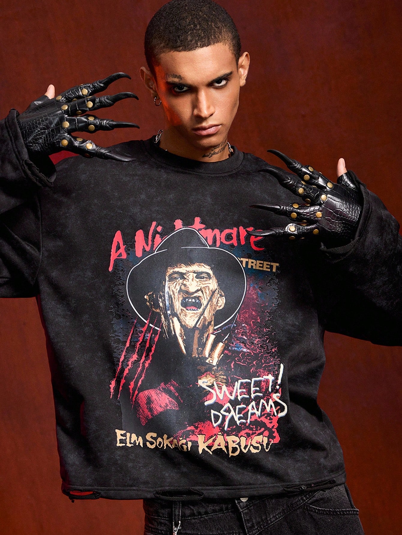 A Nightmare on Elm Street X ROMWE Herren Horror-Film Portrait Grafik Rundhals Langarm T-Shirt, Herbst