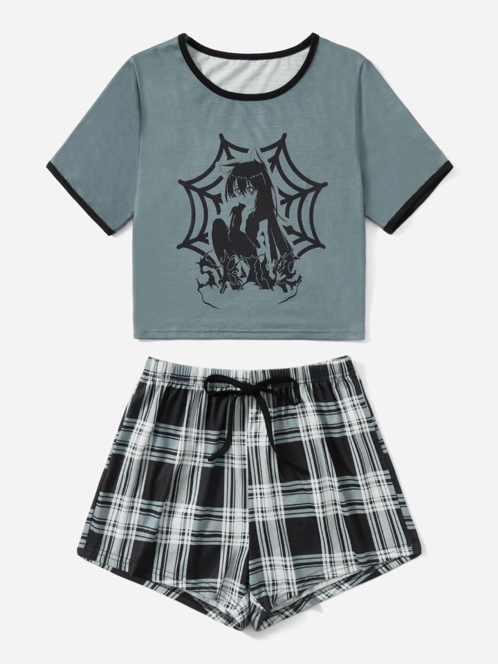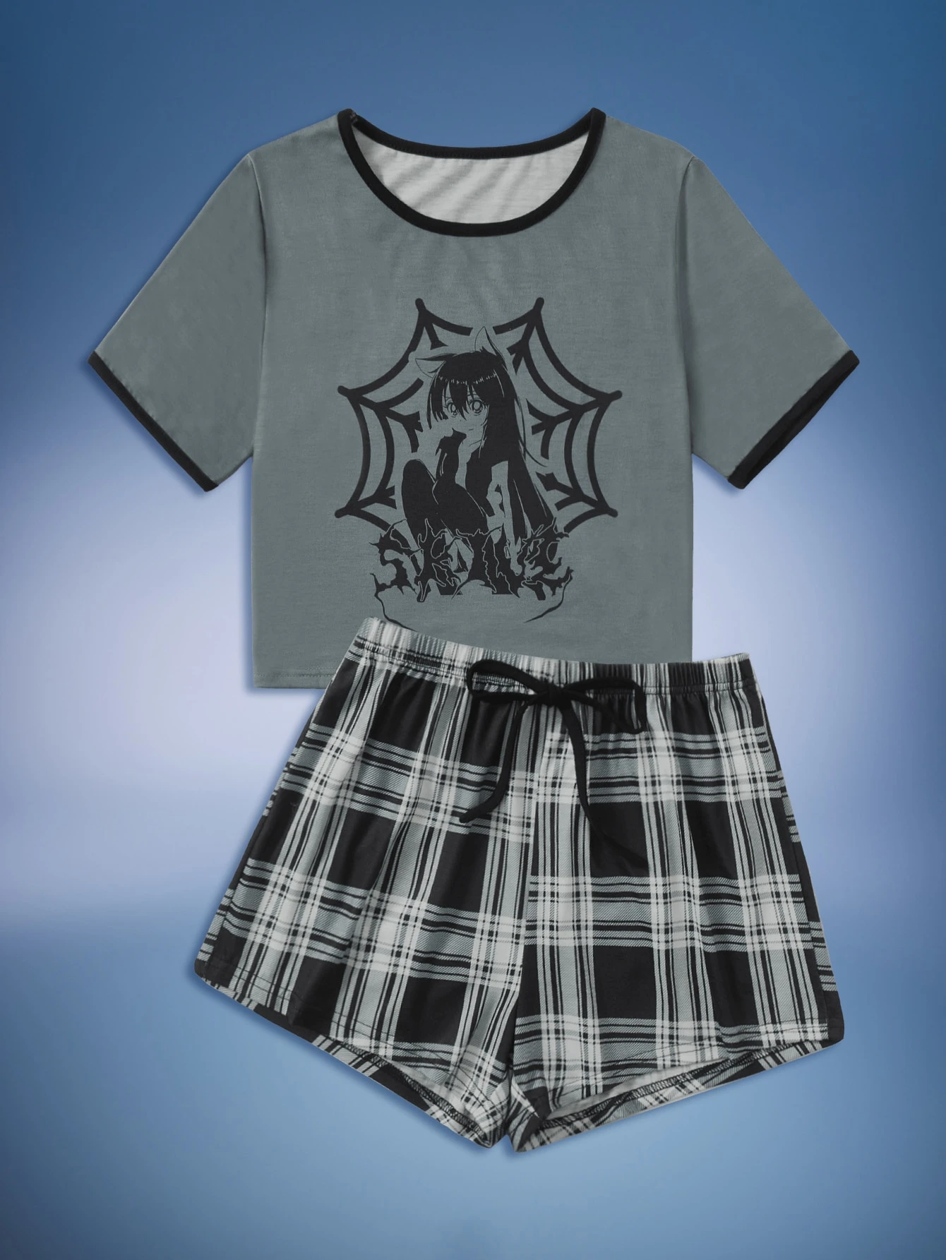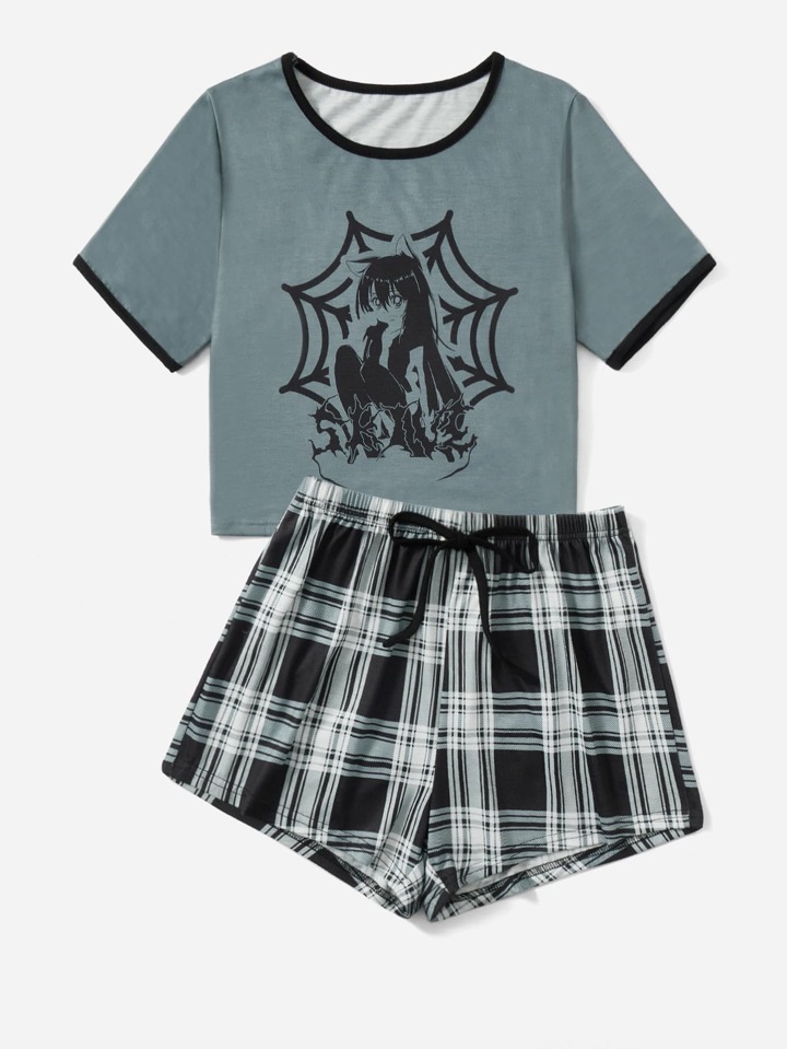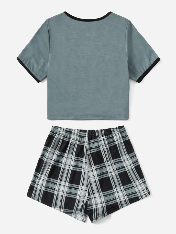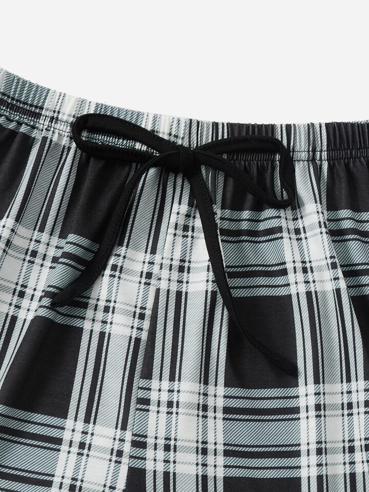 Aak Kontrastbindung Knoten Kariert Figur Lässig Damen Pyjama Sets