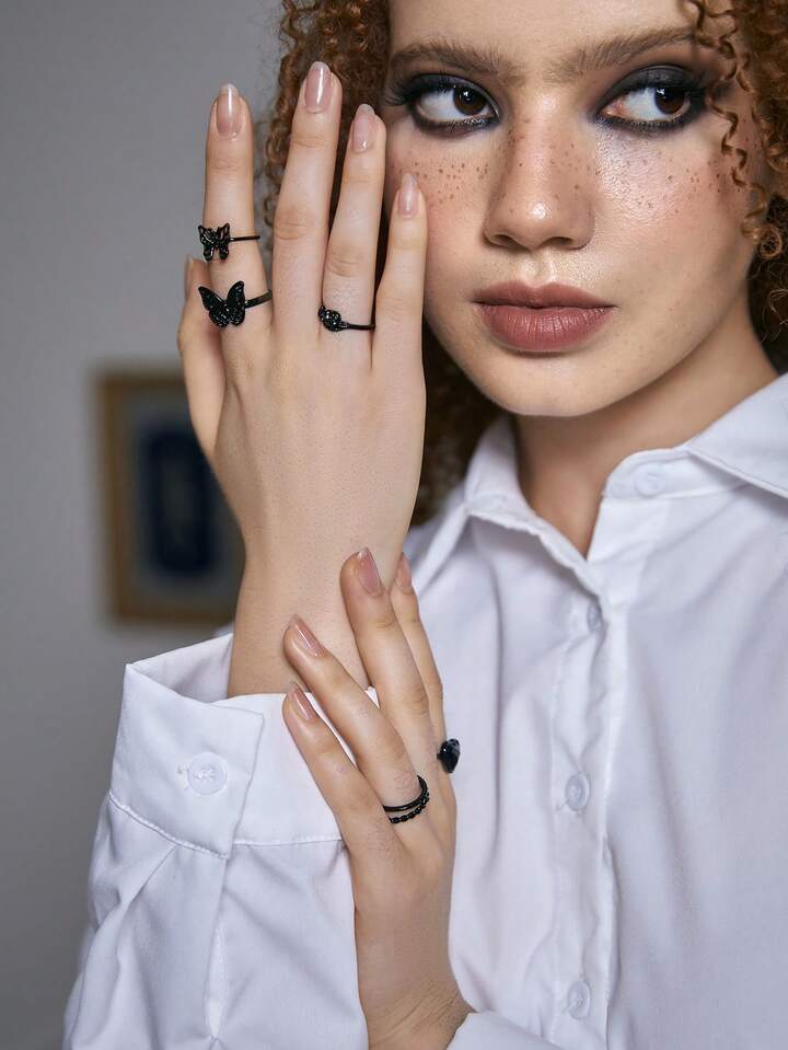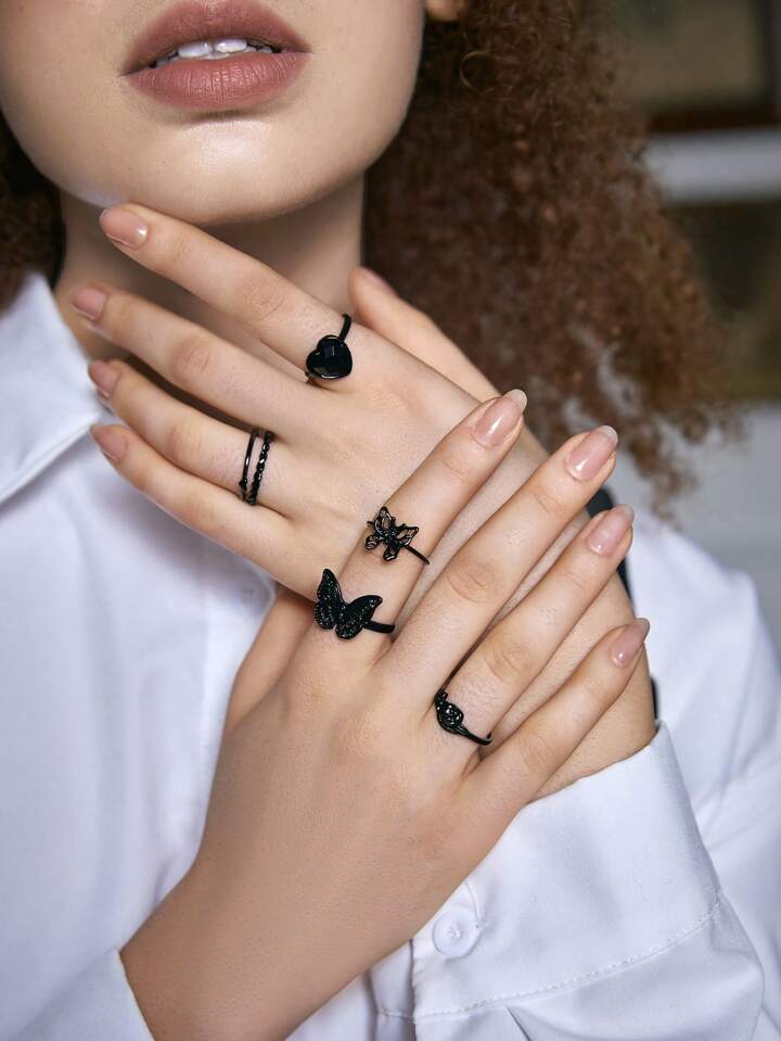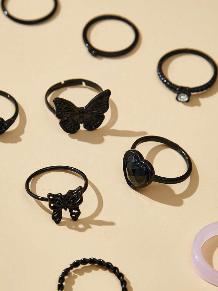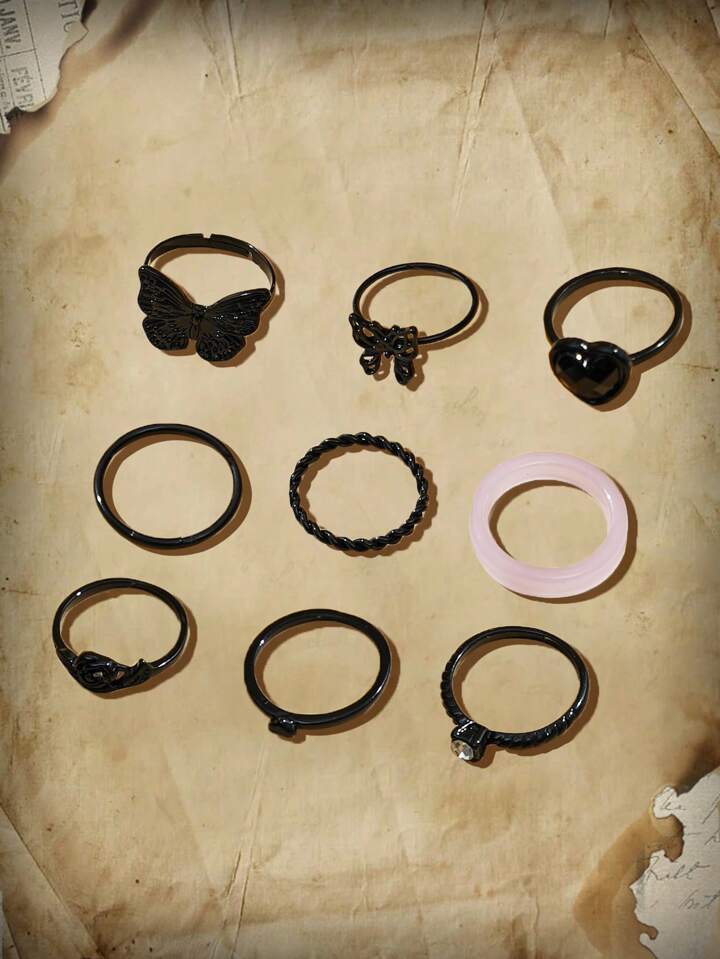 Academia 9 Stücke Ring Fashion Zinklegierung, Schmetterling Herz Strass Dekor, Für Frauen Für Tägliche Dekoration