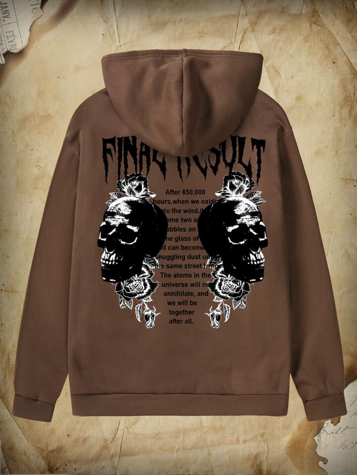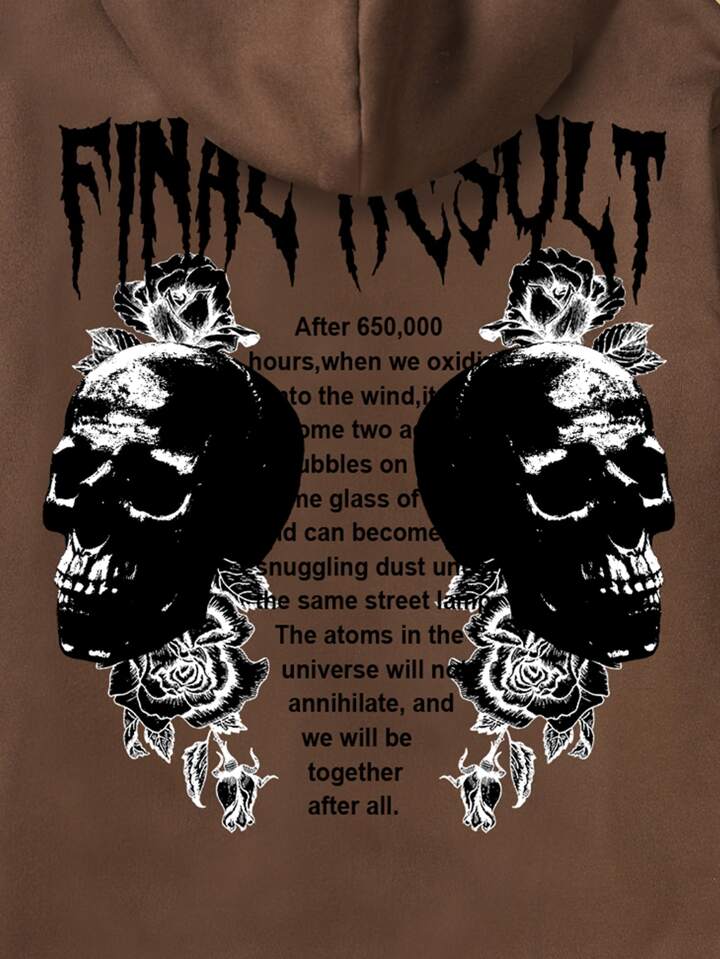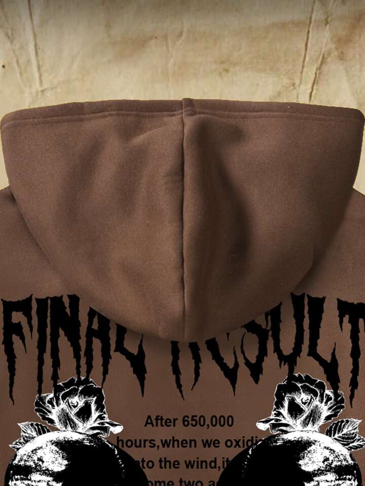 Academia Männer Hoodie mit Schädel & Rose Muster, Tunnelzug, Thermal Futter