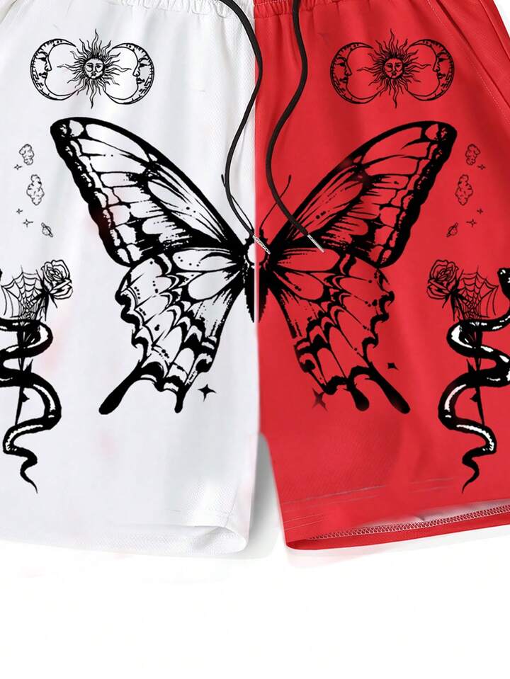 Academia Männer Shorts mit Schmetterling Muster, Tunnelzug,