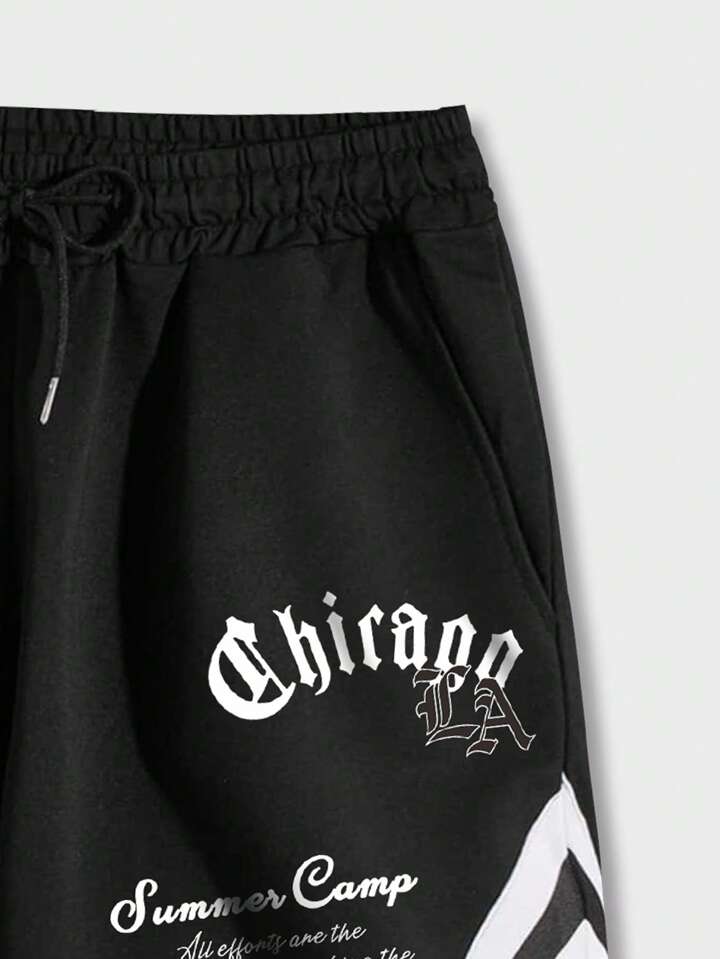 Academia Herren Basketball-Shorts mit Buchstaben-Grafik, Streifenbesatz und Kordelzug-Taille, Schule