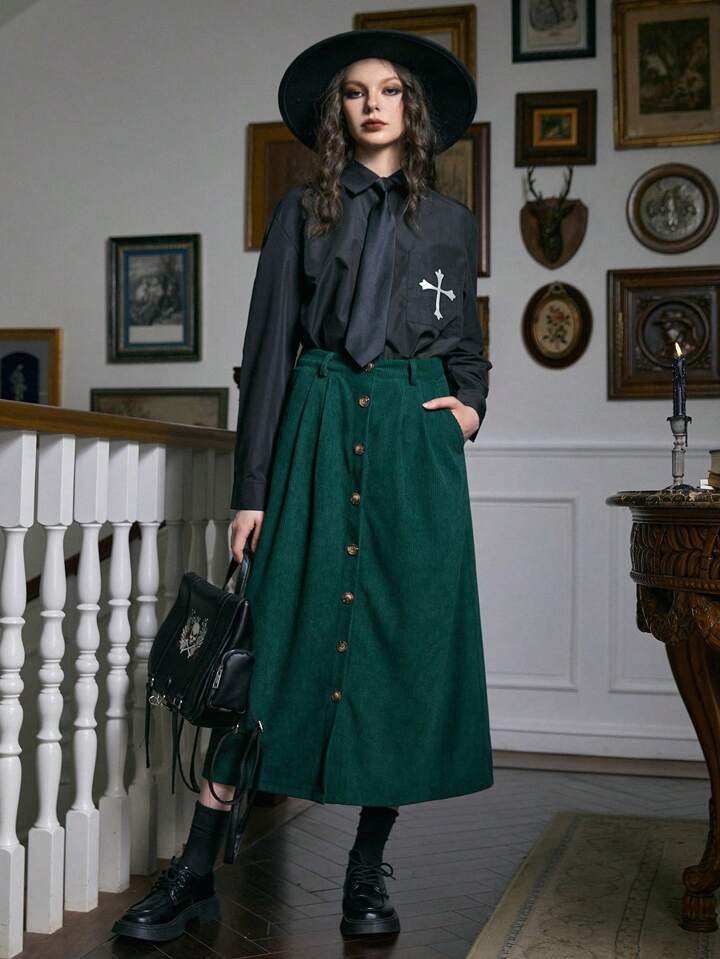 Academia Rock mit Einfarbig Knopf vorne, Kord
