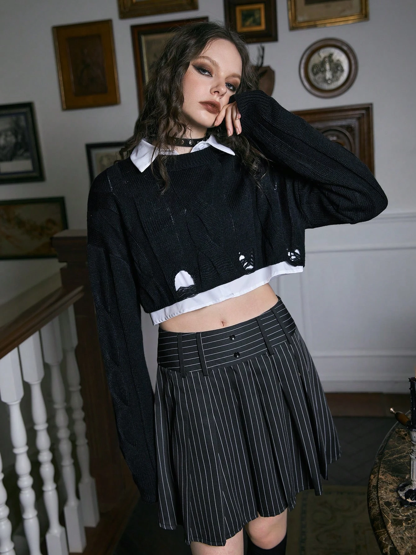 Academia Crop Pullover mit Einfarbig Zopfstrick Drop Shoulder