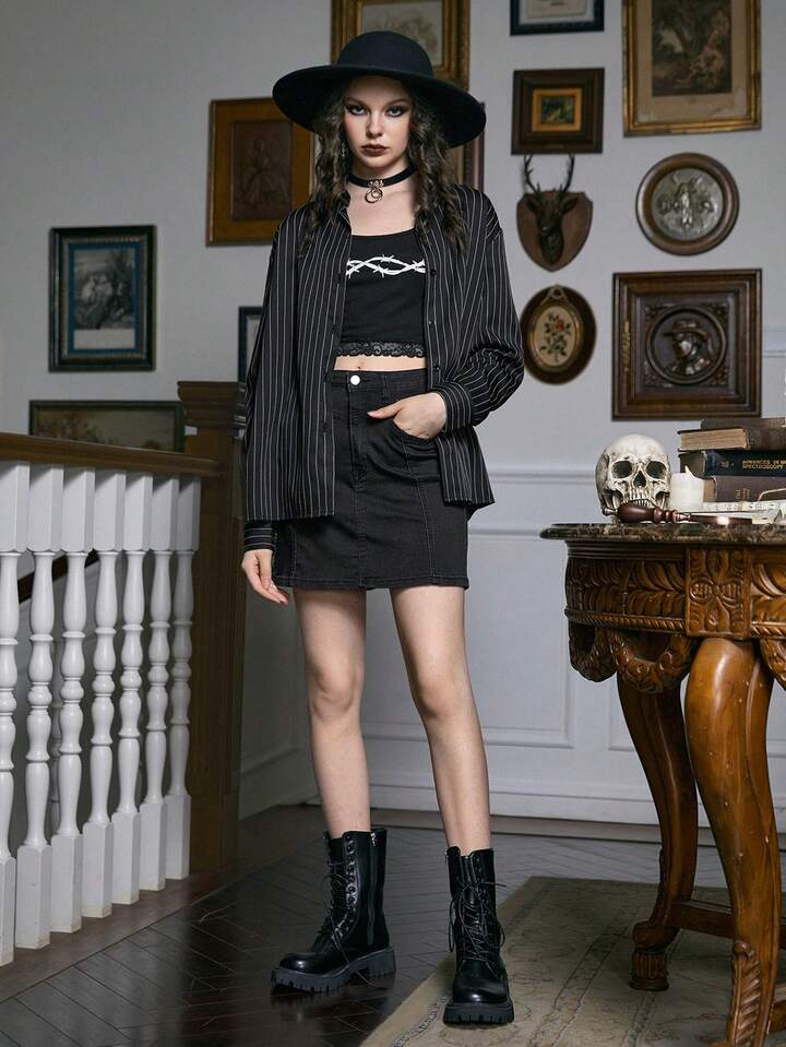 Academia Shirt mit Streifen Muster, Knopf vorne