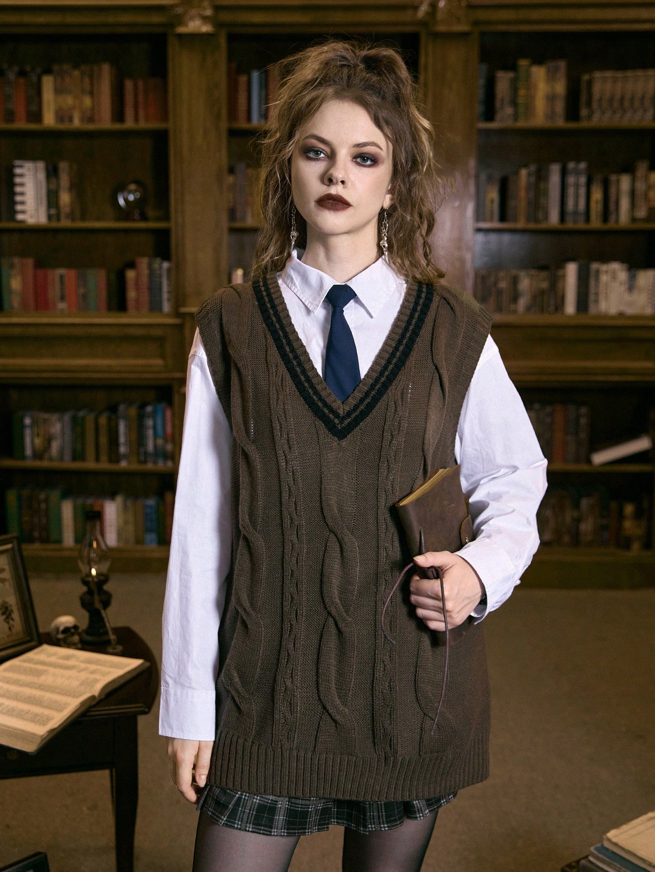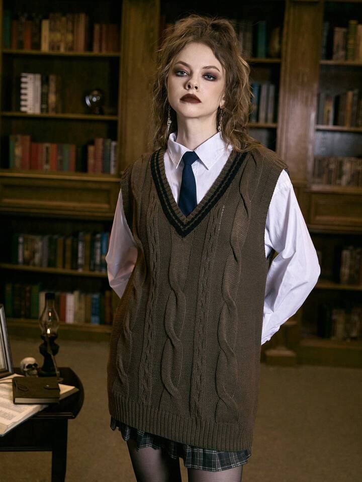 Academia Pullunder mit Streifen Zopfstrick ohne Bluse