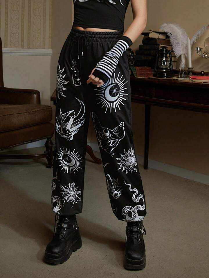 Academia Jogginghose mit Sonne & Mond Grafik Tunnelzug,