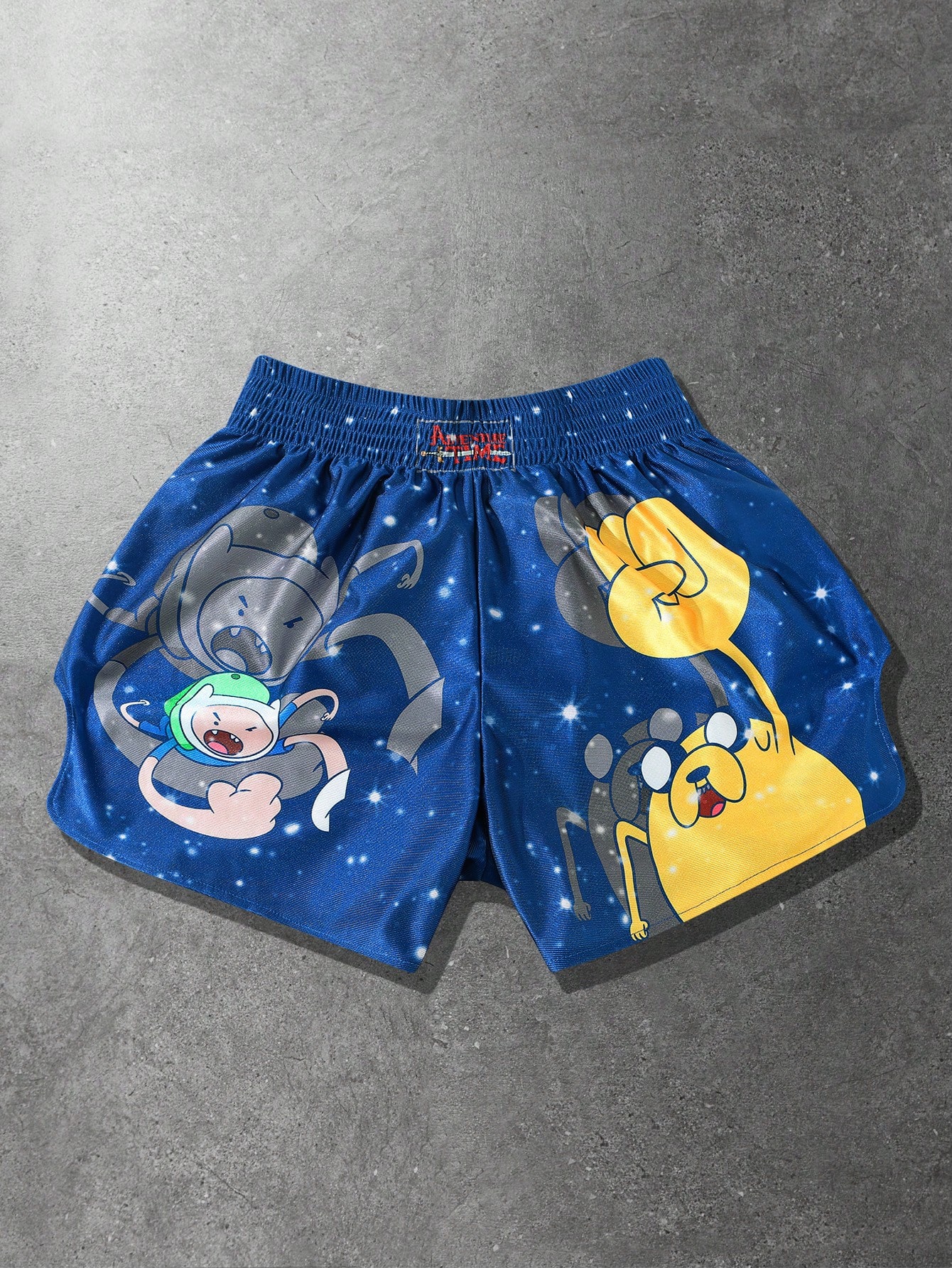 Adventure Time X ROMWE Herren Lässig Süße Cartoon Muster Elastische Taille Boxershorts, Sommer