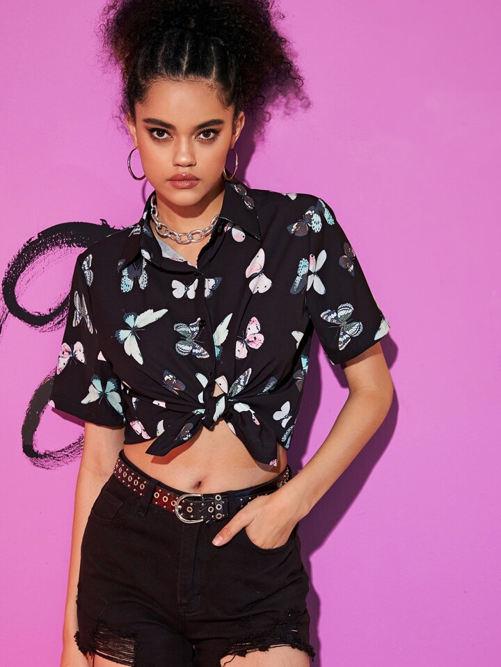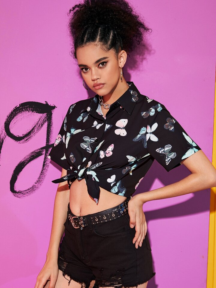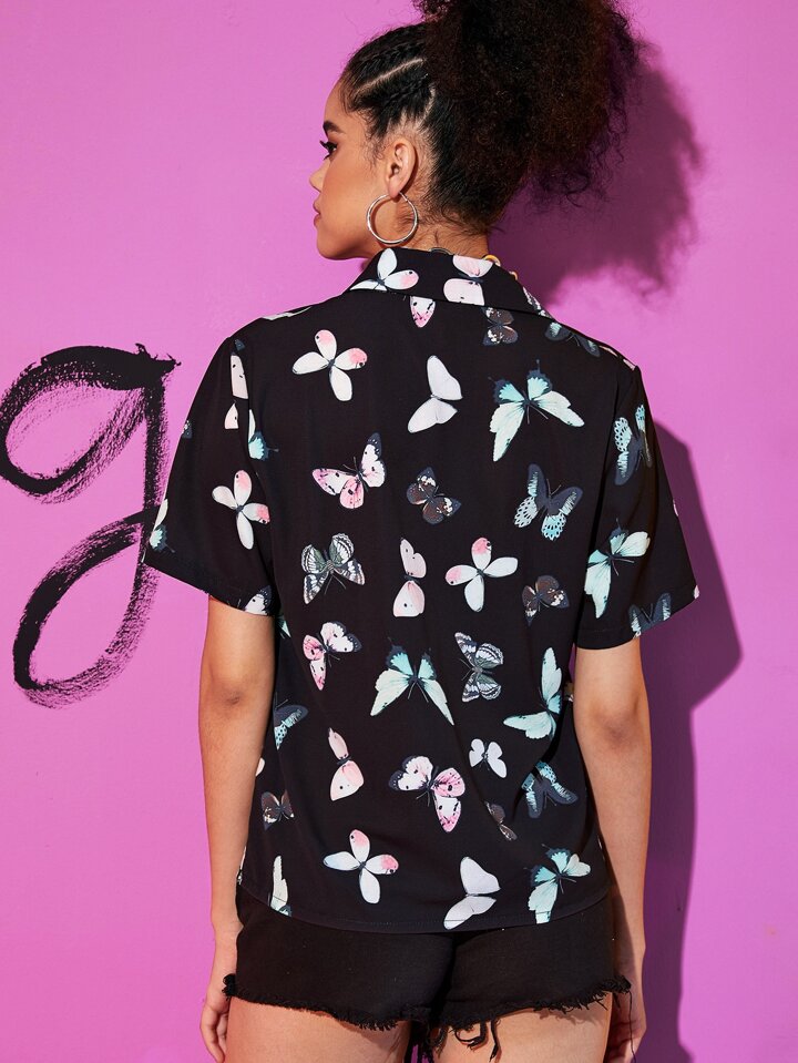 Shirt mit Schmetterling Muster und Knöpfen vorn