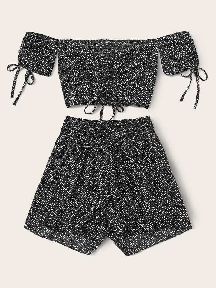 Top mit Muster, Kordelzug vorn und Shorts