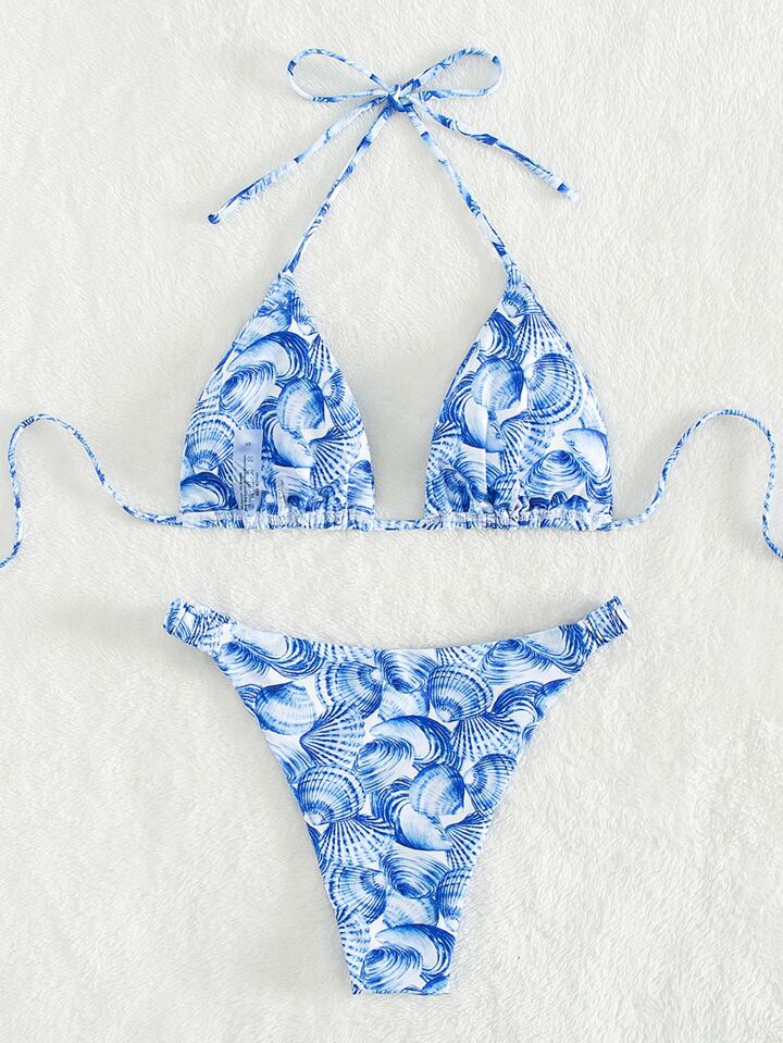 Bikini-Set für den Sommer mit Allover-Muster, Neckholder, Triangel-Oberteil und Bikinihose
