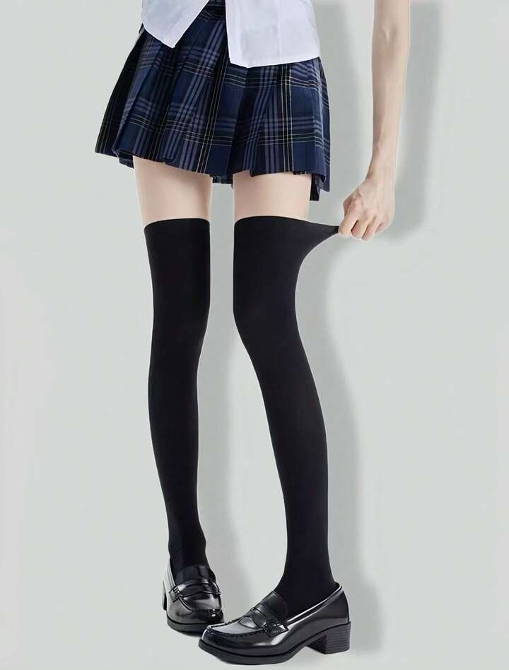 Anime 1 Paar hochelastische schwarze Oberschenkel-Overknee-Socken für Frauen