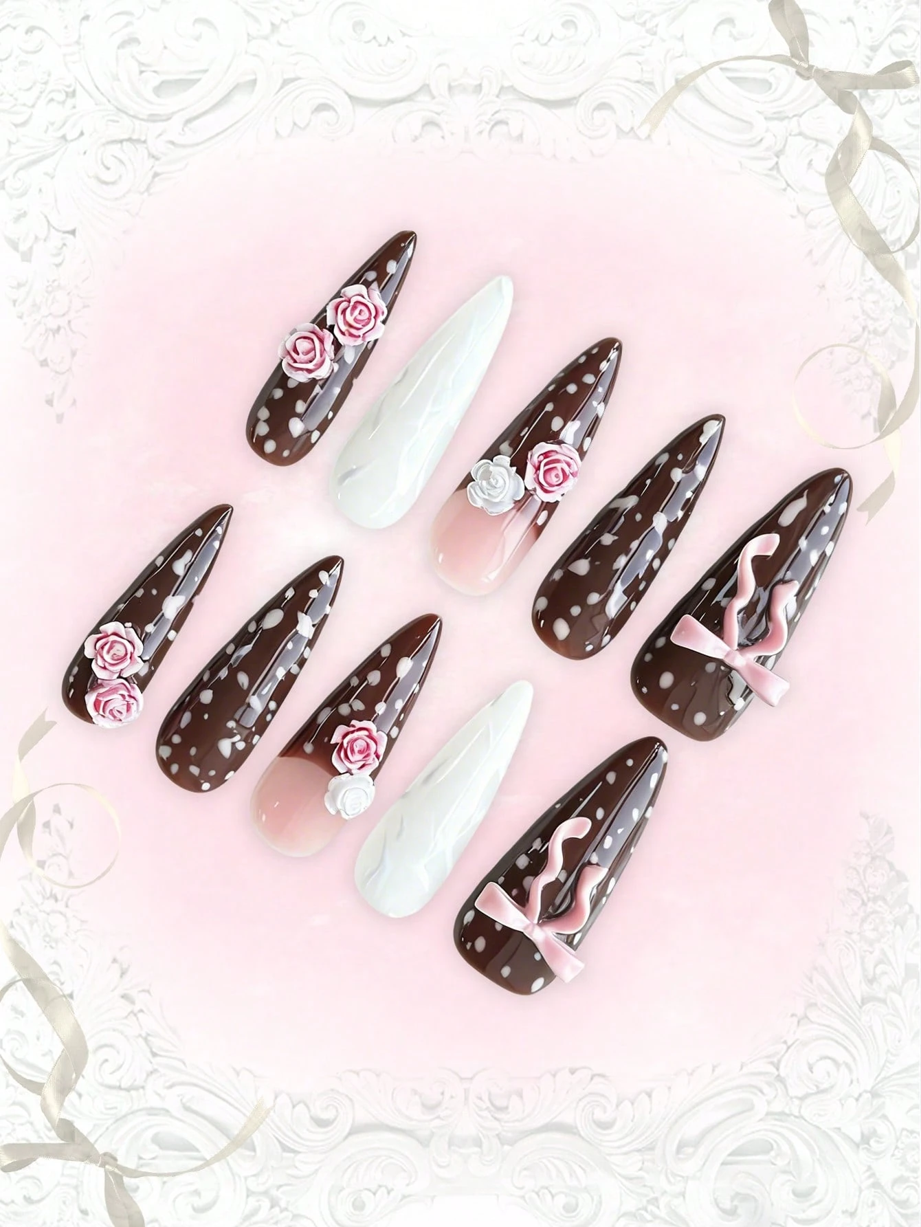 10 Stück süße Schleifen-Musik-Noten-Stern-Elemente hochwertige handgefertigte Kunstnägel + 3 Stück doppelseitiger Kleber, Y2K französischer Stil Strass-Kette Polka-Punkt abnehmbare Nail-Art-Aufkleber, geeignet für Feiertage, Partys, Tanzen und den täglichen Gebrauch