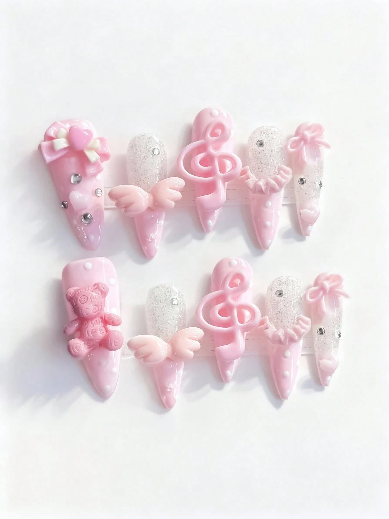 Anime 10 Stück Y2K süße Herz-, Stern-, Schleife-, Flügel-Nagelkunst Aufkleber mit Klebeband