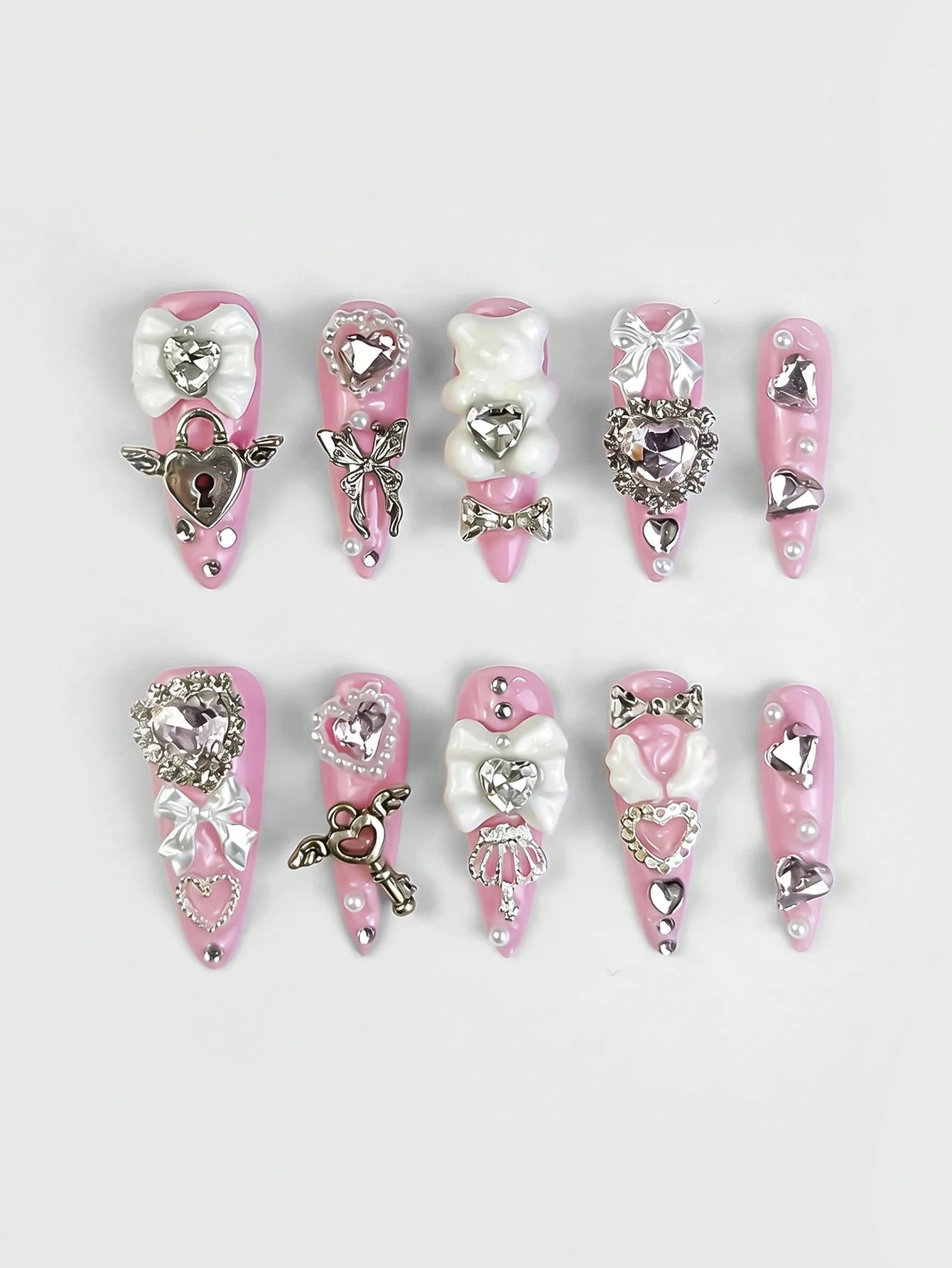 Anime 10 Stück Y2K süße Herz-, Stern-, Schleife-, Flügel-Nagelkunst Aufkleber mit Klebeband