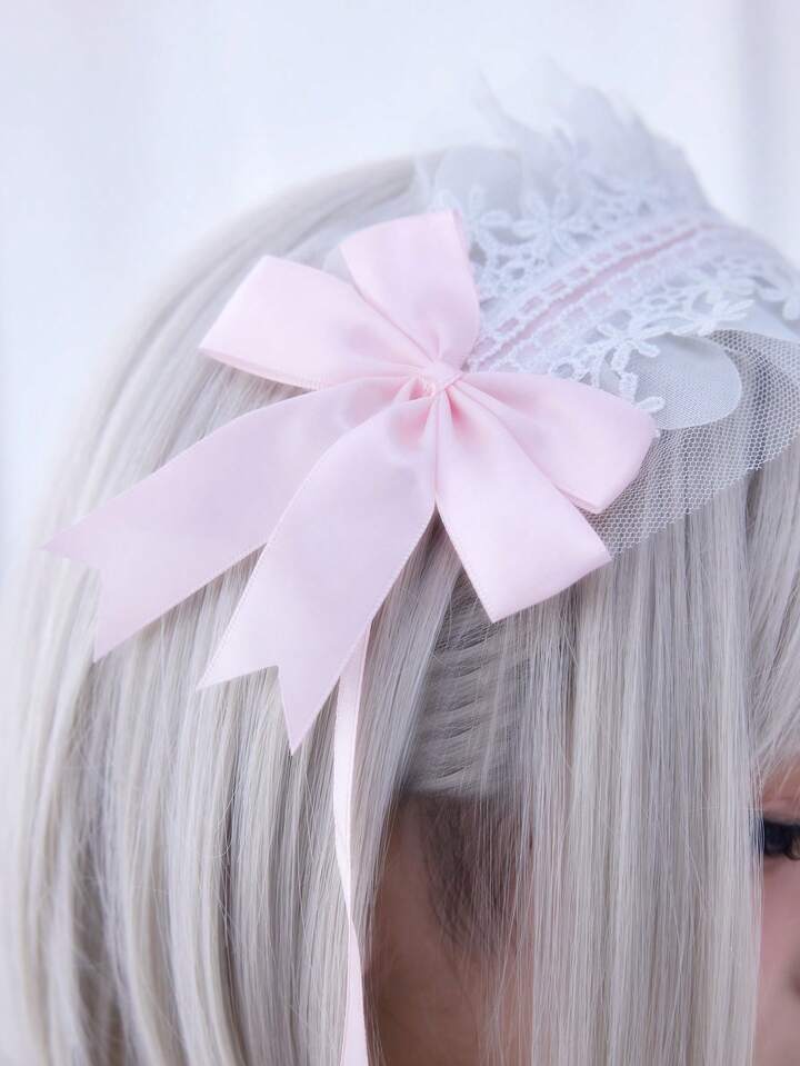Anime 1 Stück rosafarbenes Spitzen-Haarband, Lolita Haaraccessoires, süße Schleife Haarspange
